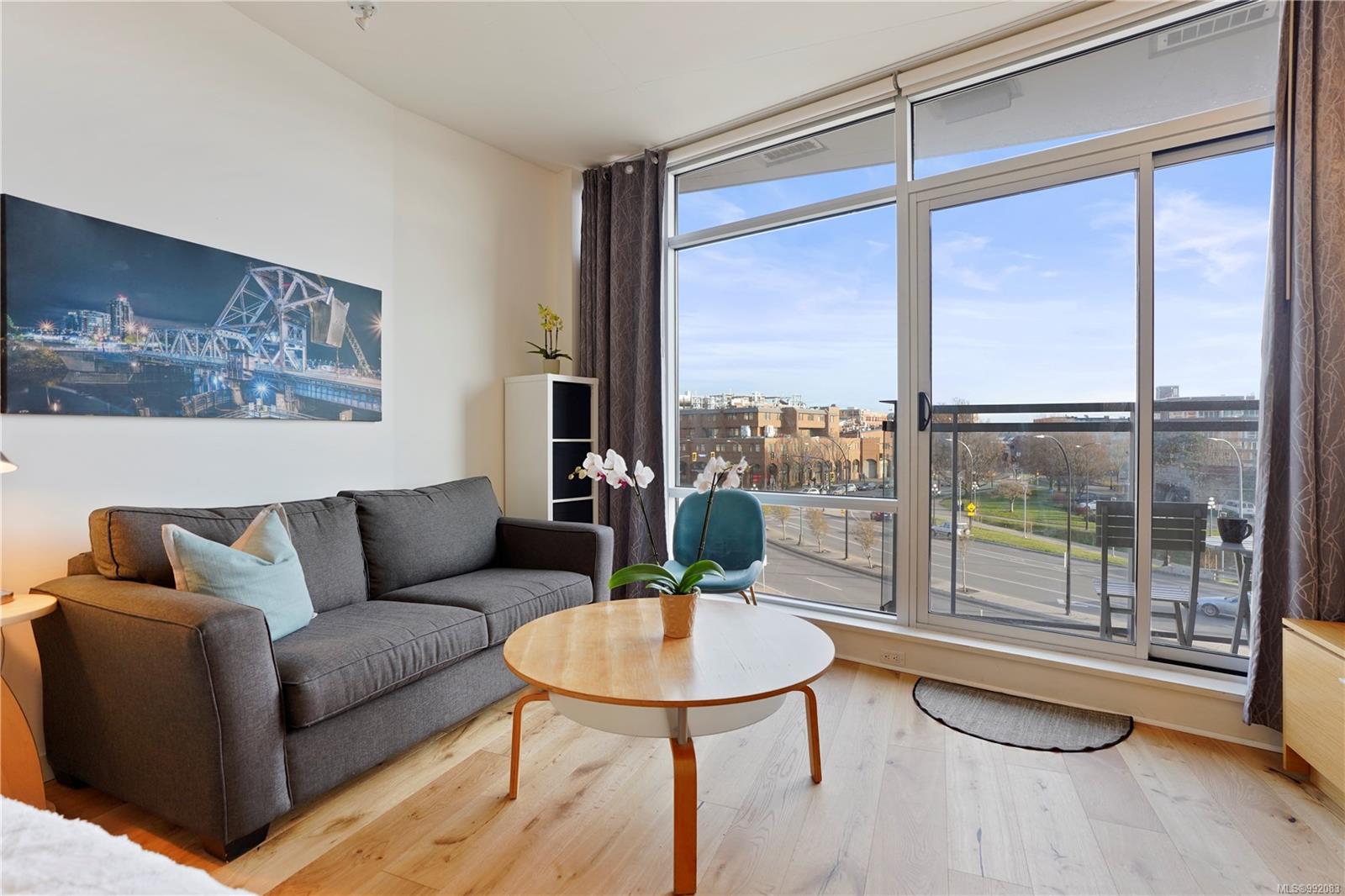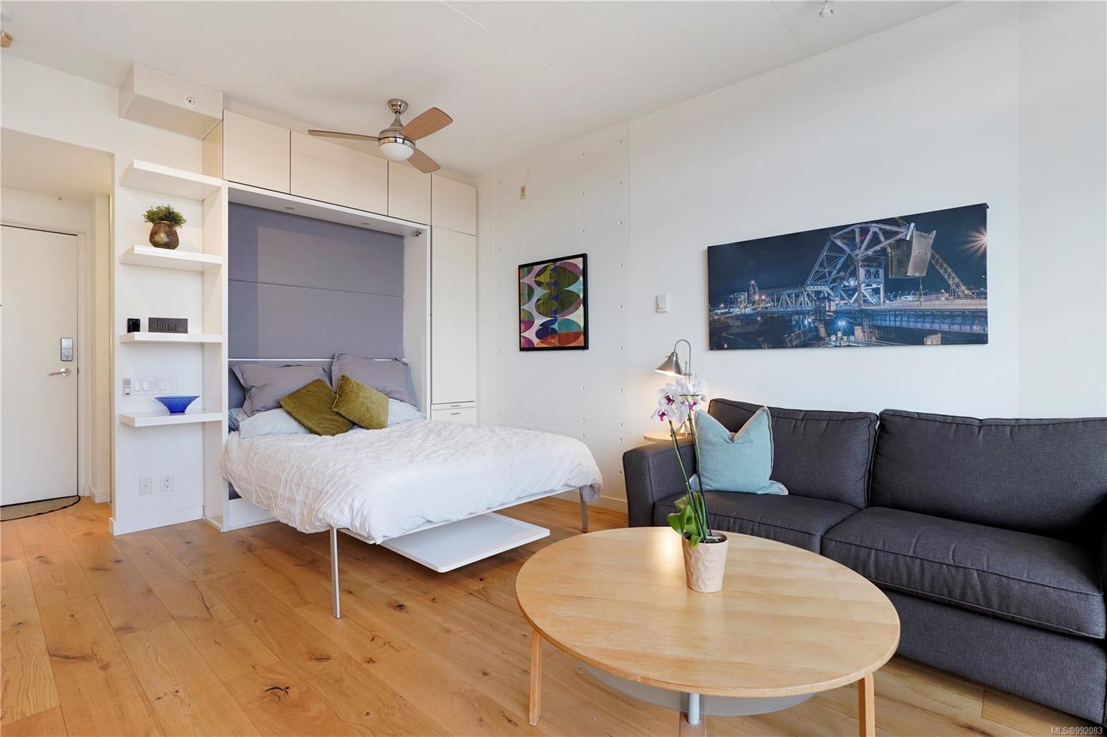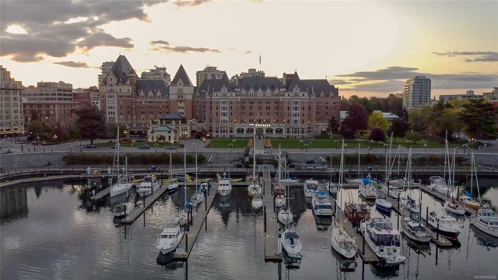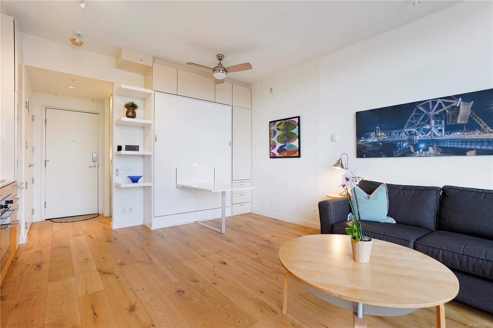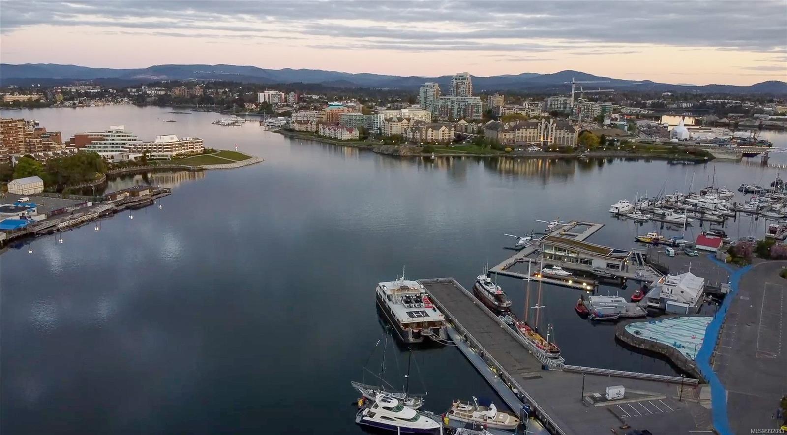 Don't miss out on this trendy 3rd-floor SOUTH-FACING unit with front & center OCEAN & INNER HARBOUR VIEWS! Welcome to The Janion, a historic Victoria landmark. Fully renovated in 2016, this waterfront residence merges heritage charm with modern design in the heart of downtown. One of the building's larger floorplans, it boasts expansive windows, private balcony, and warm wood floors. The sleek kitchen features quartz countertops and hidden appliances, while the spa-like bathroom offers a walk-in shower. A queen-sized Murphy bed that folds into a table, in-suite laundry, and a separate storage locker adds convenience. Bonus features include a rooftop patio with BBQ, fully equipped gym, secure storage, and a heritage property tax rebate. Kayak and paddleboard storage with direct waterfront launch is perfect for outdoor lovers. Steps away from vibrant markets, top restaurants, Chinatown, cafés & nightlife - this is an incredible opportunity for an unparalleled urban waterfront lifestyle.