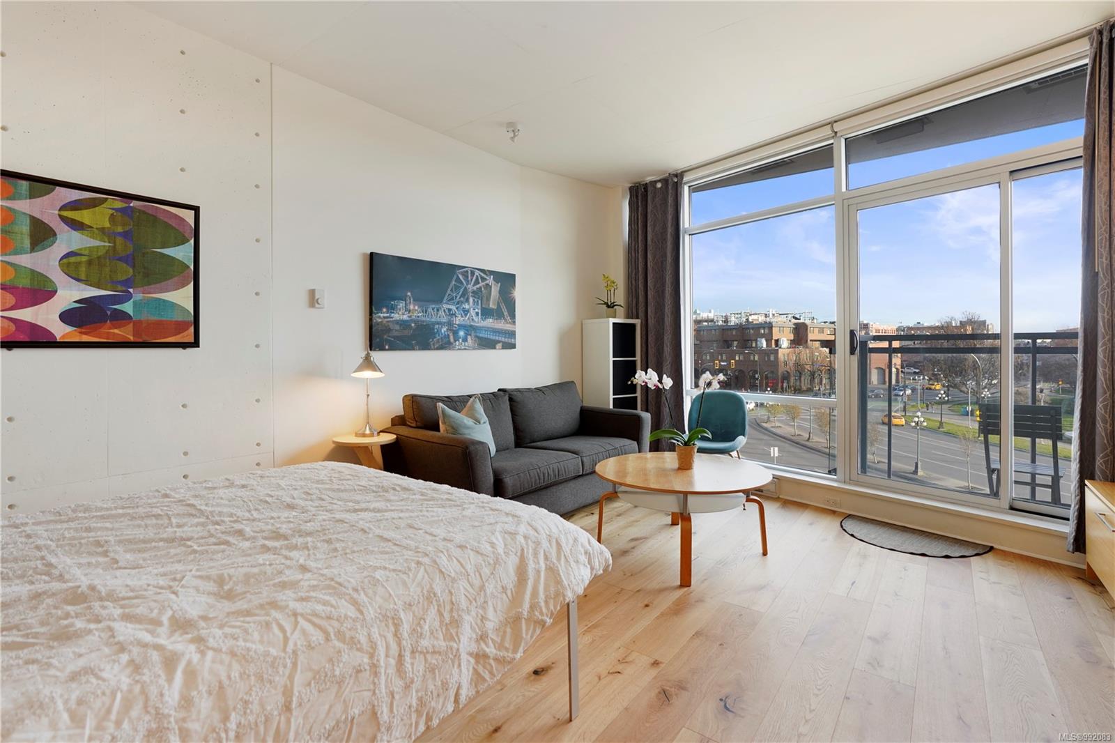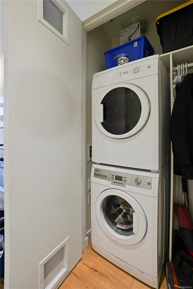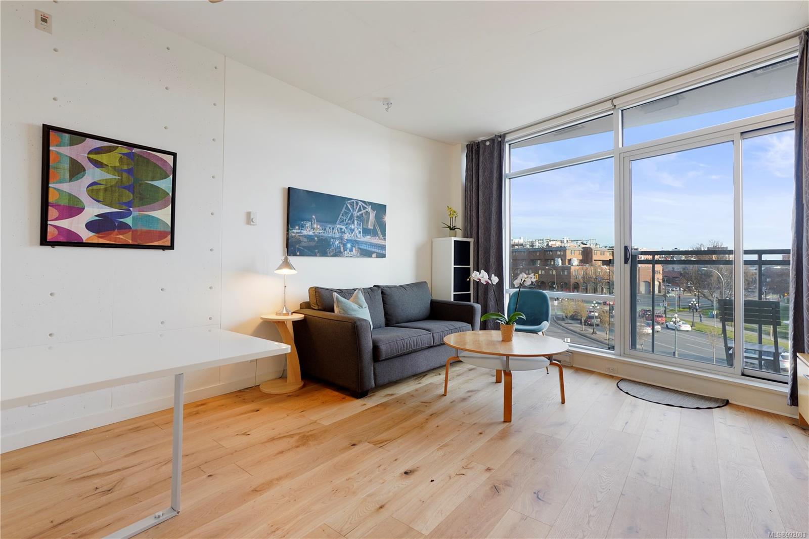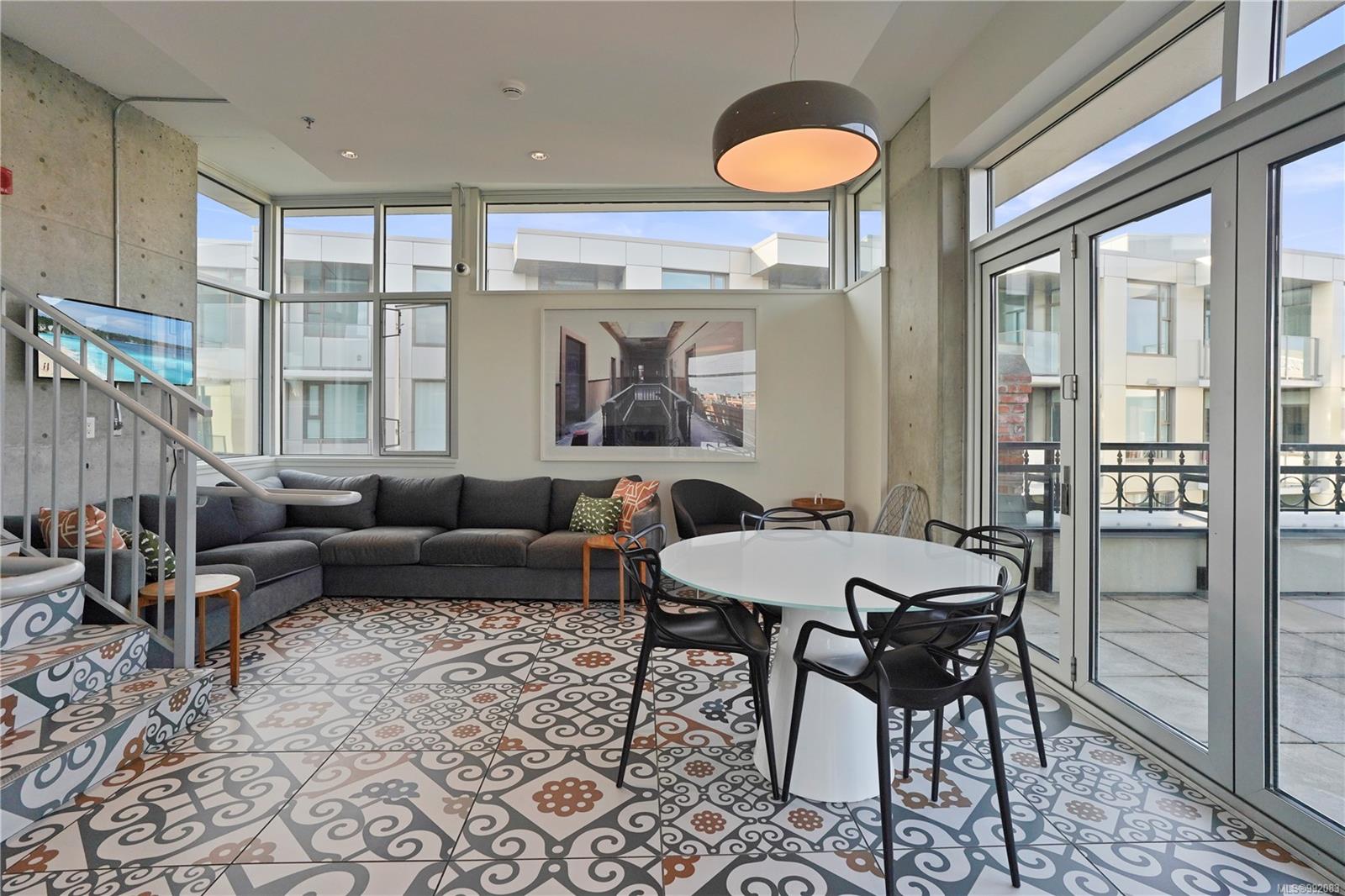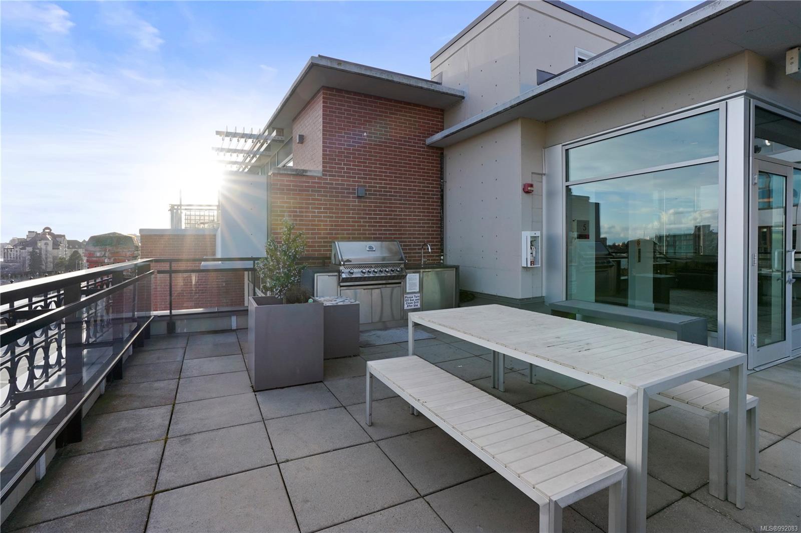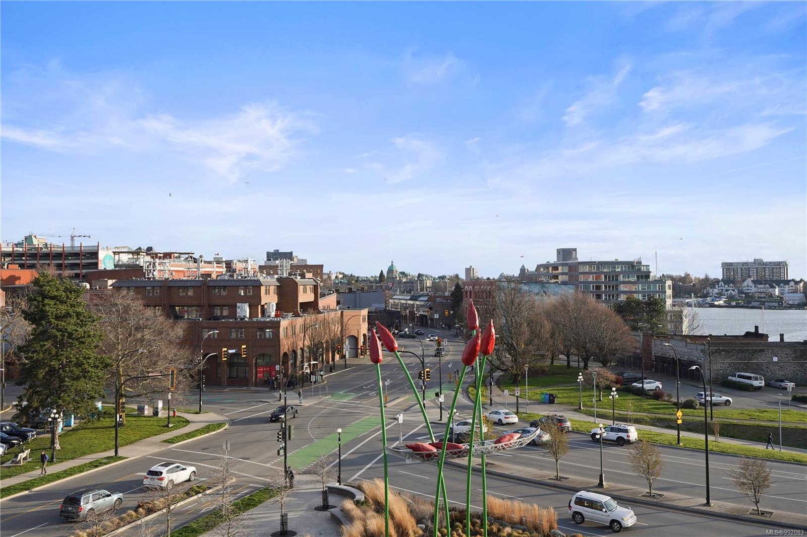 Don't miss out on this trendy 3rd-floor SOUTH-FACING unit with front & center OCEAN & INNER HARBOUR VIEWS! Welcome to The Janion, a historic Victoria landmark. Fully renovated in 2016, this waterfront residence merges heritage charm with modern design in the heart of downtown. One of the building's larger floorplans, it boasts expansive windows, private balcony, and warm wood floors. The sleek kitchen features quartz countertops and hidden appliances, while the spa-like bathroom offers a walk-in shower. A queen-sized Murphy bed that folds into a table, in-suite laundry, and a separate storage locker adds convenience. Bonus features include a rooftop patio with BBQ, fully equipped gym, secure storage, and a heritage property tax rebate. Kayak and paddleboard storage with direct waterfront launch is perfect for outdoor lovers. Steps away from vibrant markets, top restaurants, Chinatown, cafés & nightlife - this is an incredible opportunity for an unparalleled urban waterfront lifestyle.