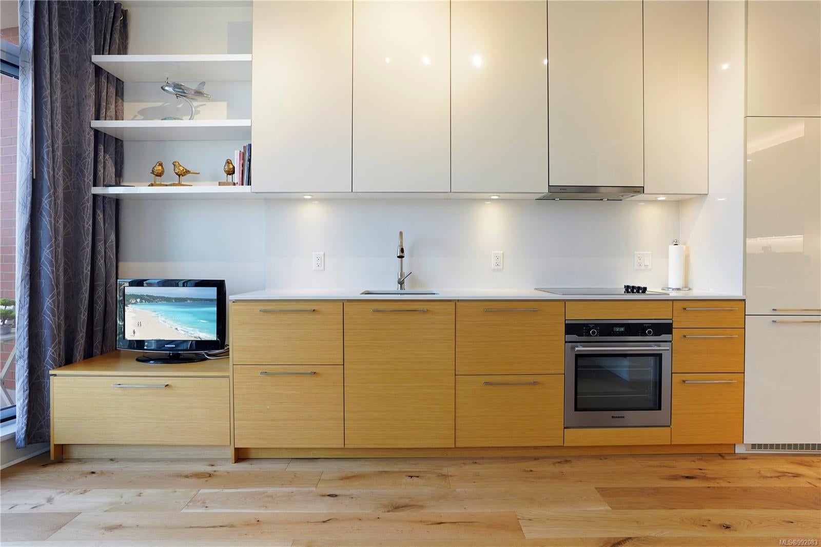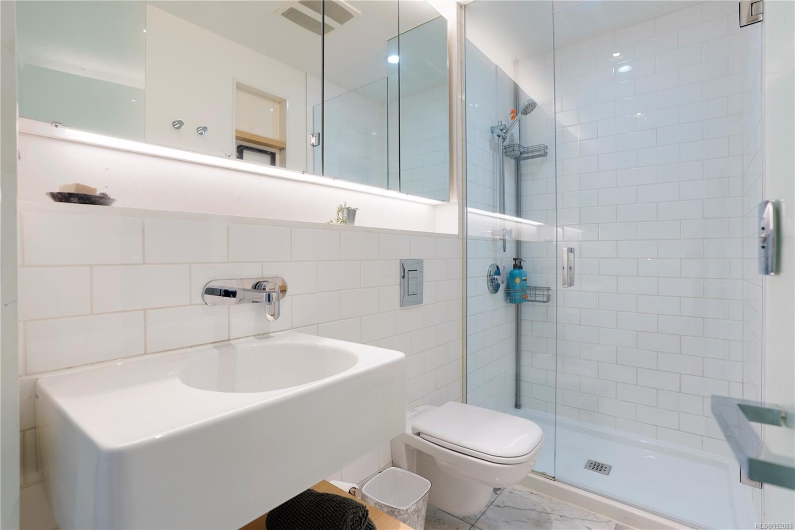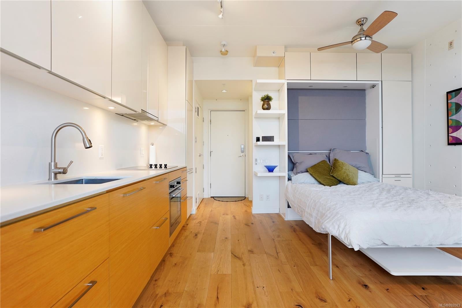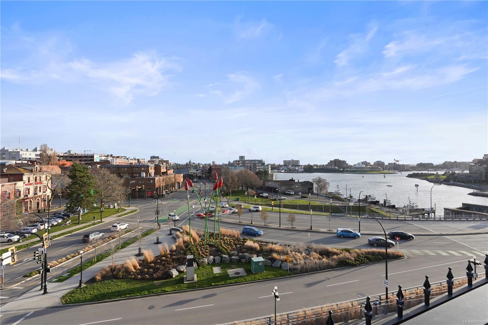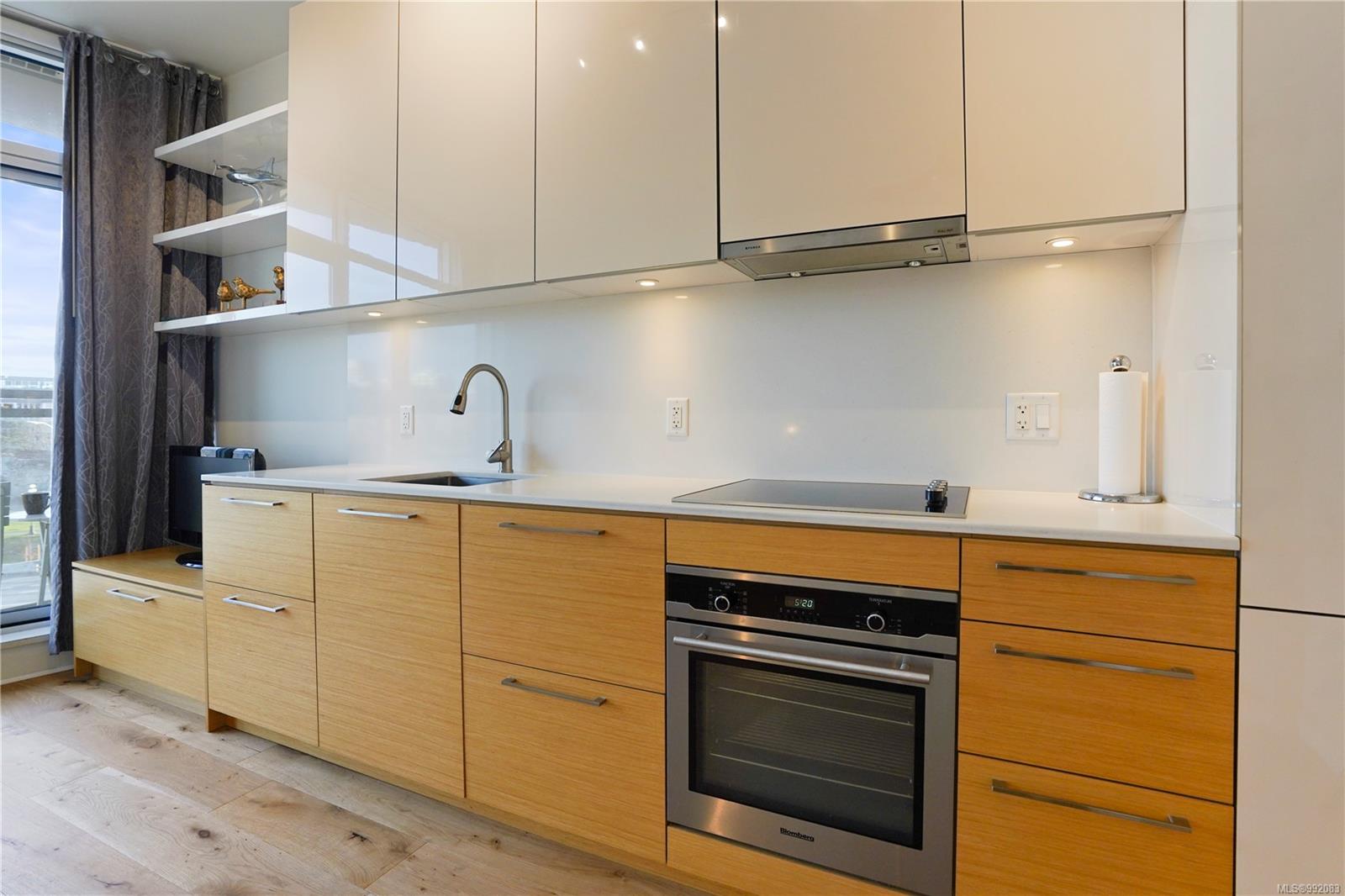 Don't miss out on this trendy 3rd-floor SOUTH-FACING unit with front & center OCEAN & INNER HARBOUR VIEWS! Welcome to The Janion, a historic Victoria landmark. Fully renovated in 2016, this waterfront residence merges heritage charm with modern design in the heart of downtown. One of the building's larger floorplans, it boasts expansive windows, private balcony, and warm wood floors. The sleek kitchen features quartz countertops and hidden appliances, while the spa-like bathroom offers a walk-in shower. A queen-sized Murphy bed that folds into a table, in-suite laundry, and a separate storage locker adds convenience. Bonus features include a rooftop patio with BBQ, fully equipped gym, secure storage, and a heritage property tax rebate. Kayak and paddleboard storage with direct waterfront launch is perfect for outdoor lovers. Steps away from vibrant markets, top restaurants, Chinatown, cafés & nightlife - this is an incredible opportunity for an unparalleled urban waterfront lifestyle.