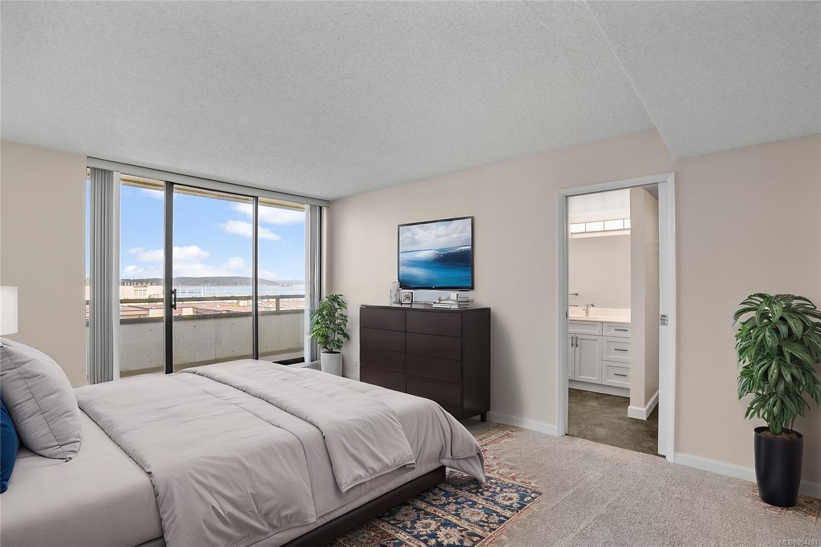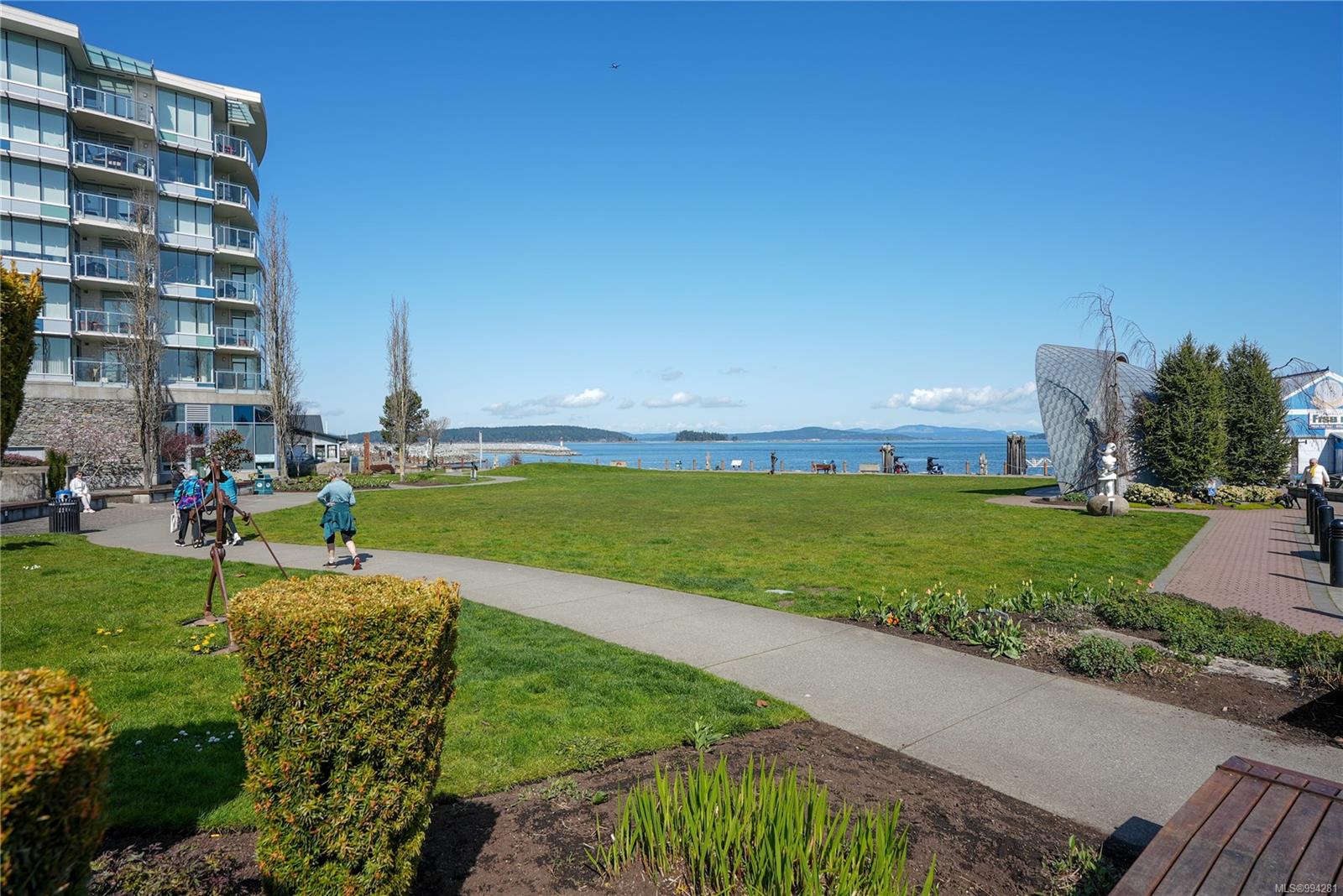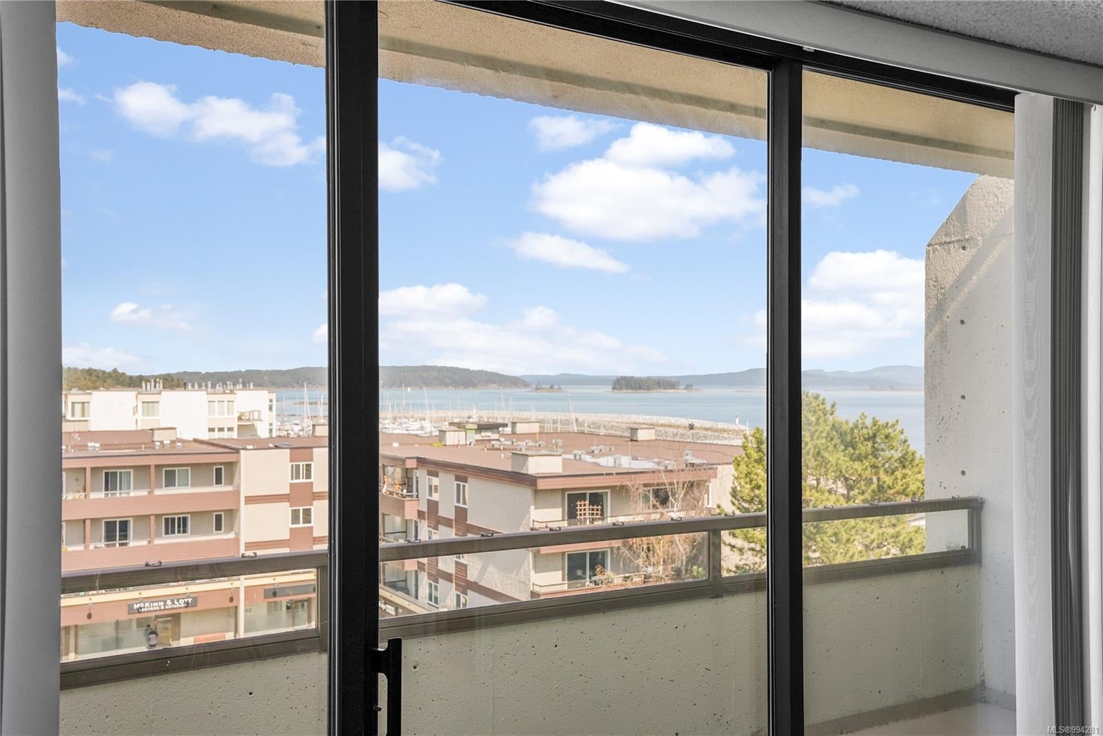SIDNEY AT ITS BEST FROM THIS SUB-PENTHOUSE WITH INCREDIBLE VIEWS!! Located in the heart of Sidney, & 2 min walk to the ocean and harbour is this FULLY RENOVATED MOVE-IN READY large 1 bedrm suite! Enjoy the wrap-around balcony facing north/west, allowing for views of the Sea, Mountains, & Marina! FEATURES: New bright, modern kitchen, appliances, tile backsplash, nice countertops, carpets, lighting, new washrm and bathrm w/ease of shower access, fresh paint, and much more! Views from all rooms, including large living rm w/space for office as well as a separate dining area, eating nook, laundry rm & storage closet. Amazing master bedrm w/large ensuite complete w/walk-in shower & walk-in closet! A nice large concrete balcony off the living rm & bedrm that gives you privacy and allows you to enjoy the views & outdoor living. Underground parking, secured entrance, guest suites, and just steps to shopping, restaurants, and all amenities - the promenade & park areas! Great value & a must see!
