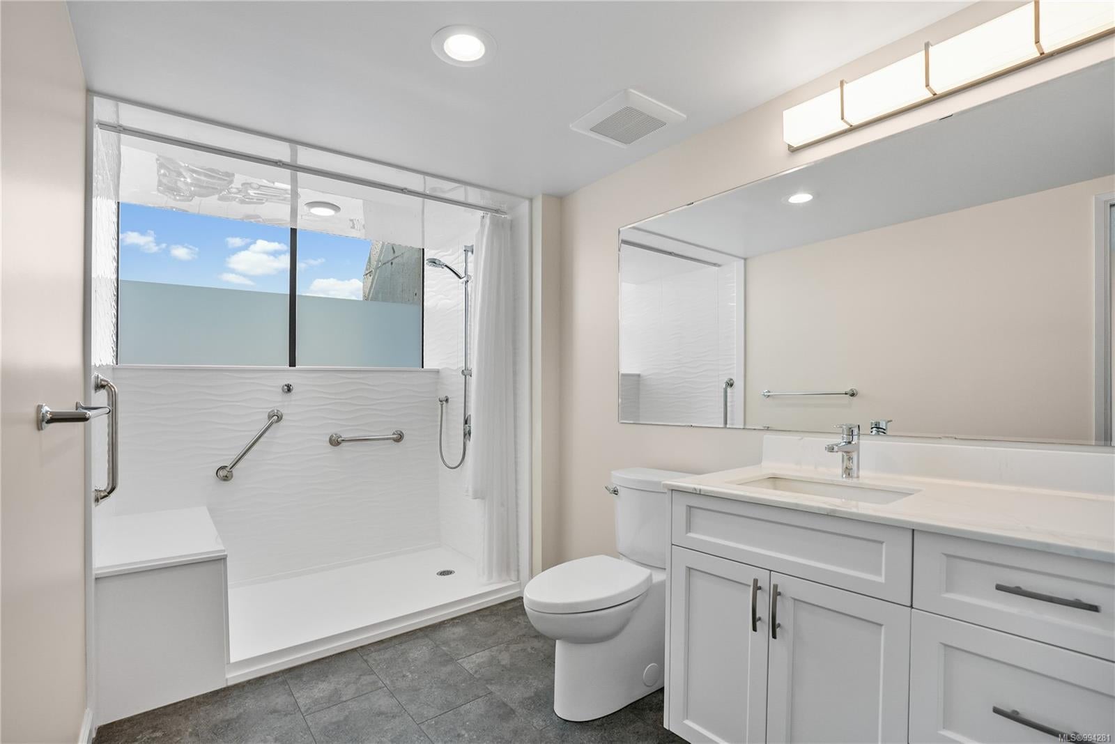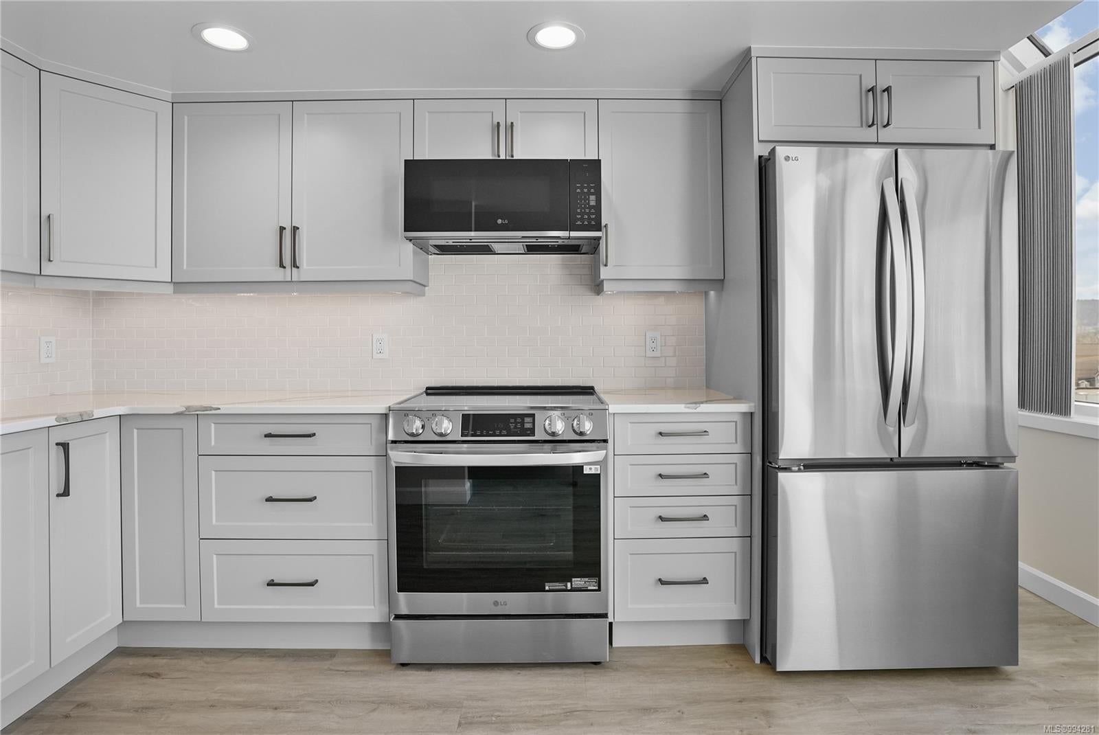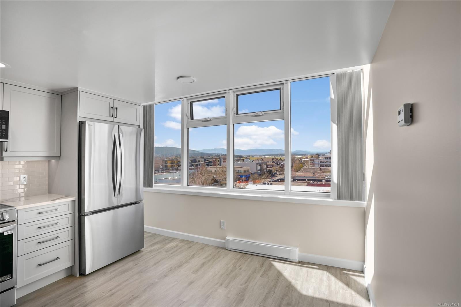 SIDNEY AT ITS BEST FROM THIS SUB-PENTHOUSE WITH INCREDIBLE VIEWS!! Located in the heart of Sidney, & 2 min walk to the ocean and harbour is this FULLY RENOVATED MOVE-IN READY large 1 bedrm suite! Enjoy the wrap-around balcony facing north/west, allowing for views of the Sea, Mountains, & Marina! FEATURES: New bright, modern kitchen, appliances, tile backsplash, nice countertops, carpets, lighting, new washrm and bathrm w/ease of shower access, fresh paint, and much more! Views from all rooms, including large living rm w/space for office as well as a separate dining area, eating nook, laundry rm & storage closet. Amazing master bedrm w/large ensuite complete w/walk-in shower & walk-in closet! A nice large concrete balcony off the living rm & bedrm that gives you privacy and allows you to enjoy the views & outdoor living. Underground parking, secured entrance, guest suites, and just steps to shopping, restaurants, and all amenities - the promenade & park areas! Great value & a must see!