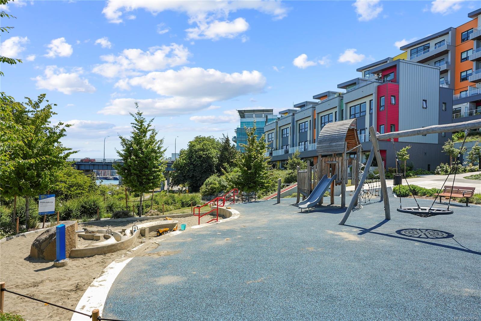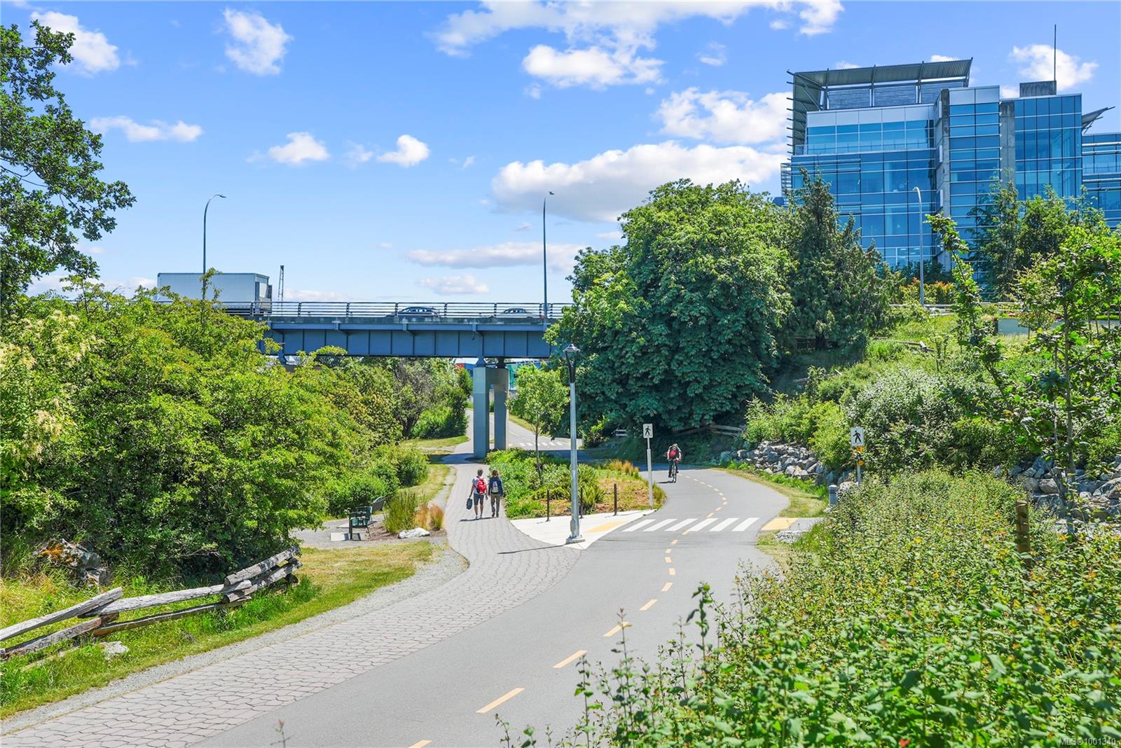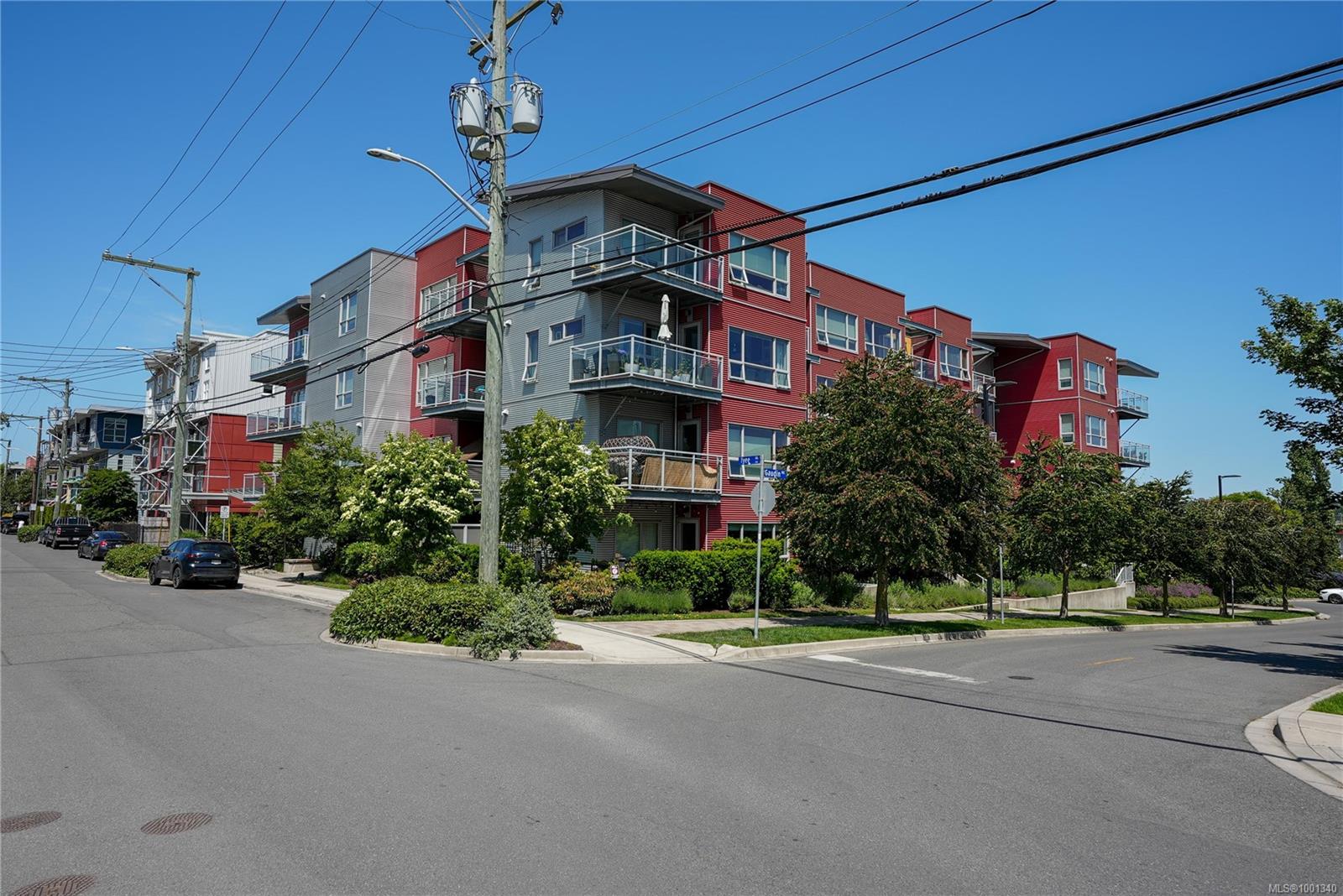OH Sat June 28th 12:30-2PM. Welcome to Bonds Landing in the Railyards - Located in vibrant Vic West the Railyards is a quaint collection of condos and townhomes situated on the Selkirk waterway. Walking distance to groceries, restaurants, cafes, and easy access to the Galloping Goose Trail highlight the convenience and quality of life this location offers. This large one bedrm unit features quartz countertops, open concept living space, a nice kitchen & south/east facing balcony. Bonds Landing is one of the few condo buildings that allows 2 dogs (1 under 25 lbs) or 2 cats. Bonus: newer hot water tank, underground secure parking space, additional storage, and bike storage. Walk to Westside village close by & explore the Gorge Waterway to paddleboard right from the dock or bike to downtown Victoria. Now vacant for flexible possession dates. Great value on this unit at the Railyards where you can live in a great community and enjoy a healthy lifestyle and call this home!