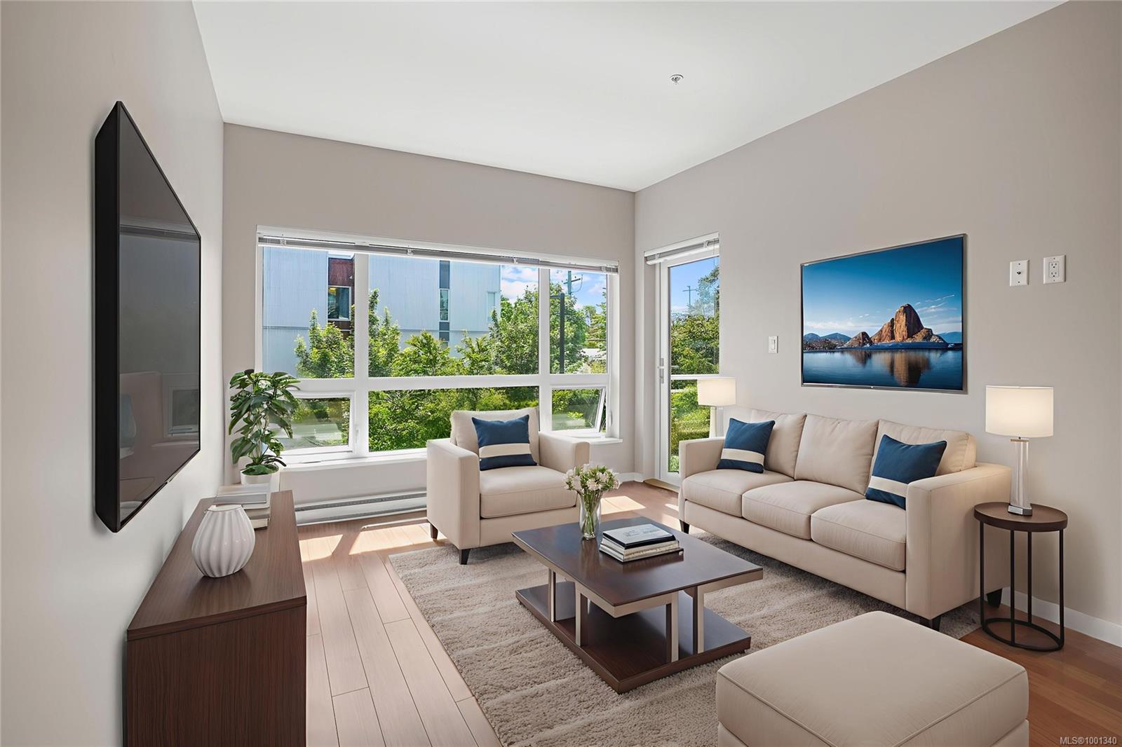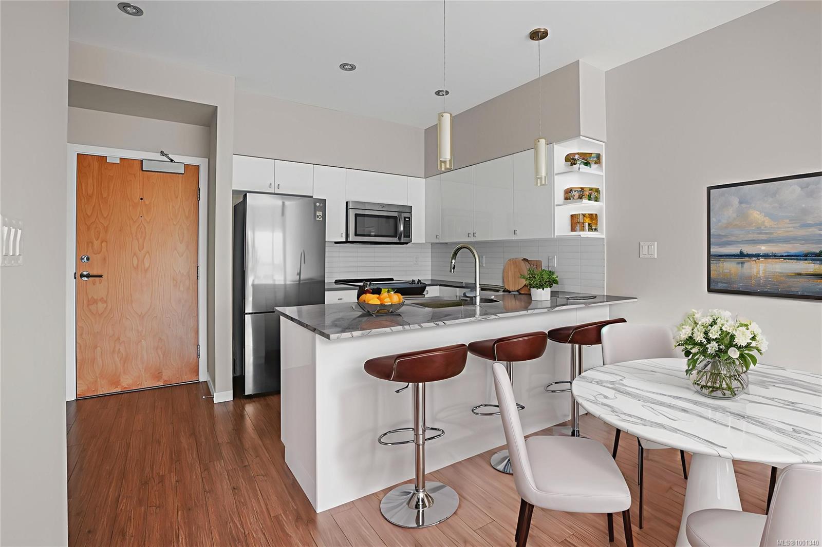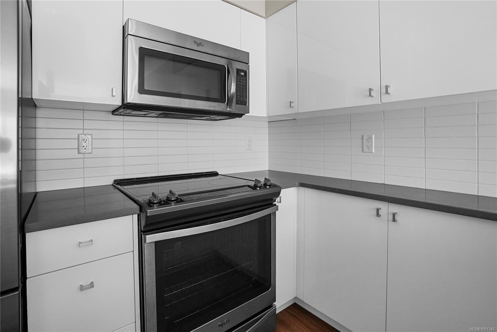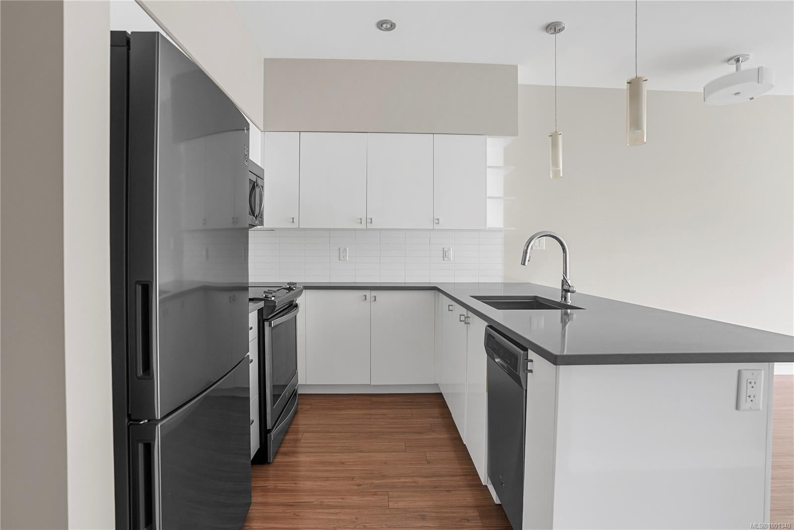OH Sat June 28th 12:30-2PM. Welcome to Bonds Landing in the Railyards - Located in vibrant Vic West the Railyards is a quaint collection of condos and townhomes situated on the Selkirk waterway. Walking distance to groceries, restaurants, cafes, and easy access to the Galloping Goose Trail highlight the convenience and quality of life this location offers. This large one bedrm unit features quartz countertops, open concept living space, a nice kitchen & south/east facing balcony. Bonds Landing is one of the few condo buildings that allows 2 dogs (1 under 25 lbs) or 2 cats. Bonus: newer hot water tank, underground secure parking space, additional storage, and bike storage. Walk to Westside village close by & explore the Gorge Waterway to paddleboard right from the dock or bike to downtown Victoria. Now vacant for flexible possession dates. Great value on this unit at the Railyards where you can live in a great community and enjoy a healthy lifestyle and call this home!