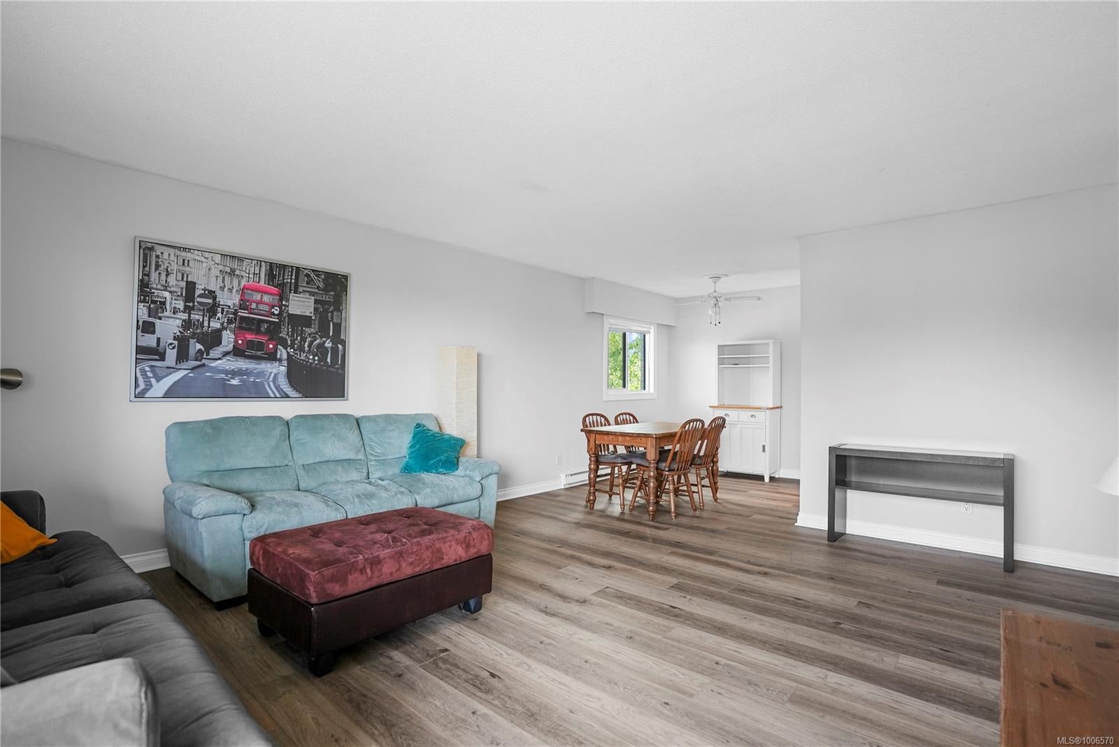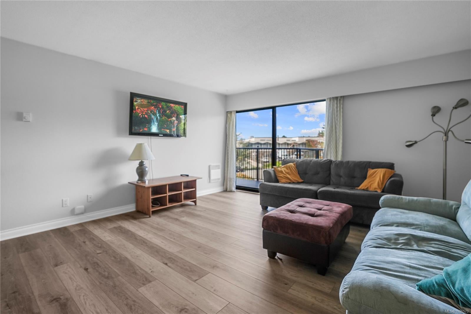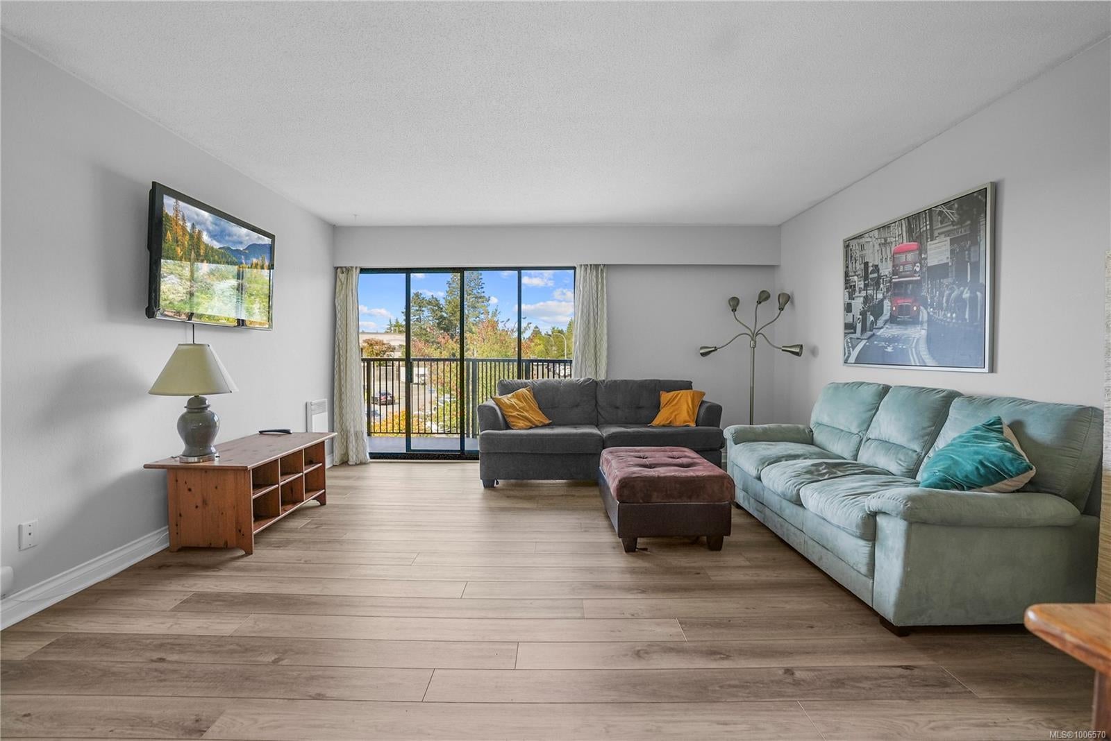Welcome to University Park Terrace, ideally located just one block from the entrance to UVIC. Rarely available, this bright & spacious top-floor corner unit offers 2 beds, 1 bath, window in dining area, & 1,097 s/f of living space. Enjoy a newly upgraded and modern kitchen & bathrooms, & brand-new laminate flooring, adding style & durability. The large, light-filled living room opens onto a generous 106 s/f balcony, perfectly positioned to capture the morning sun—ideal for your morning coffee or quiet study time. Both bedrooms are generously sized with plenty of natural light & direct access to the balcony. Additional features include in-suite laundry, dedicated parking, & a separate storage locker. The building also offers common bike storage! Located just minutes from Tuscany Village, shops, restaurants, parks, & transit, this is an unbeatable location whether you're looking for a home or a smart investment property—perfect for UVic students. Vacant & ready for immediate possession.