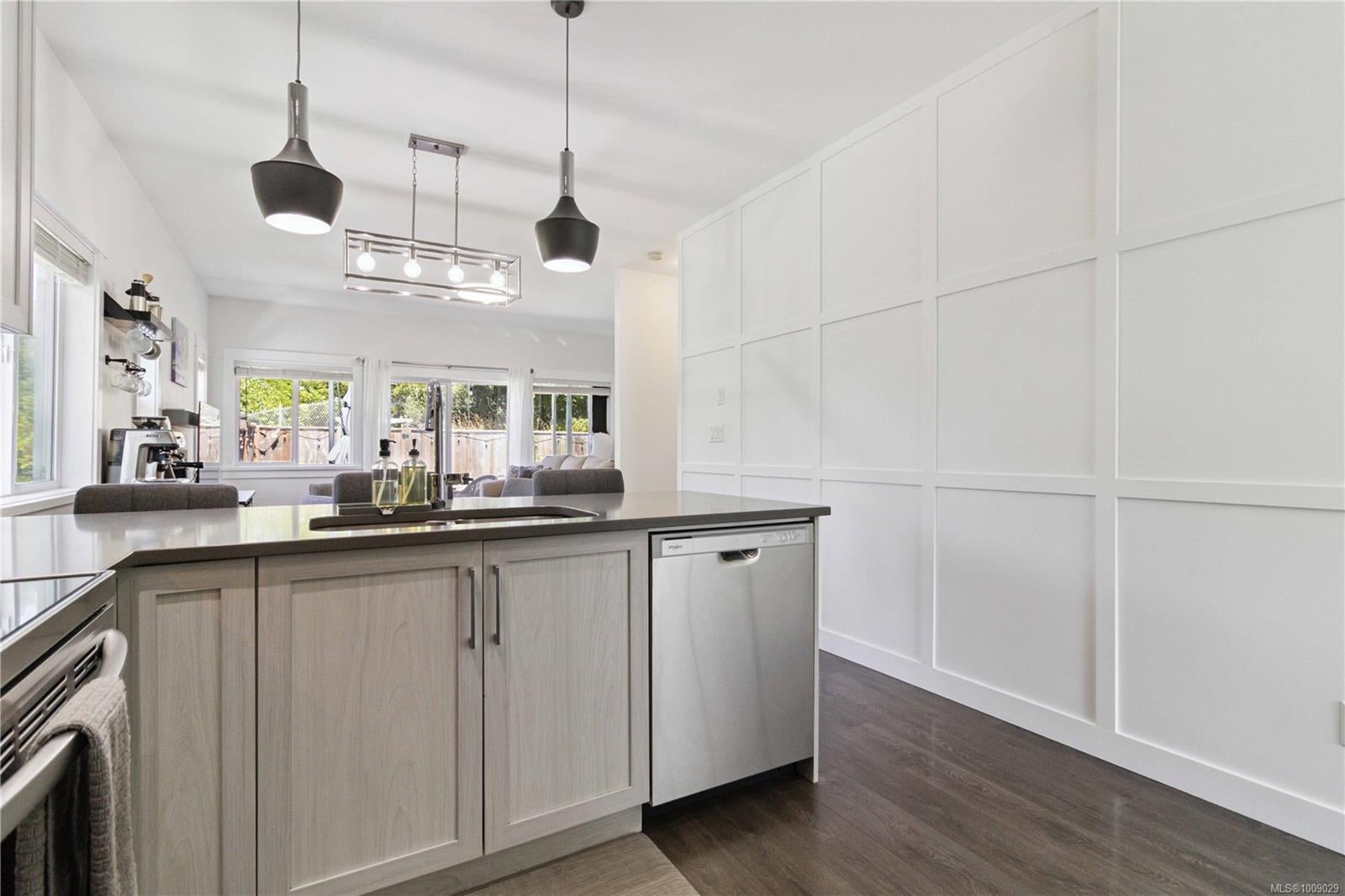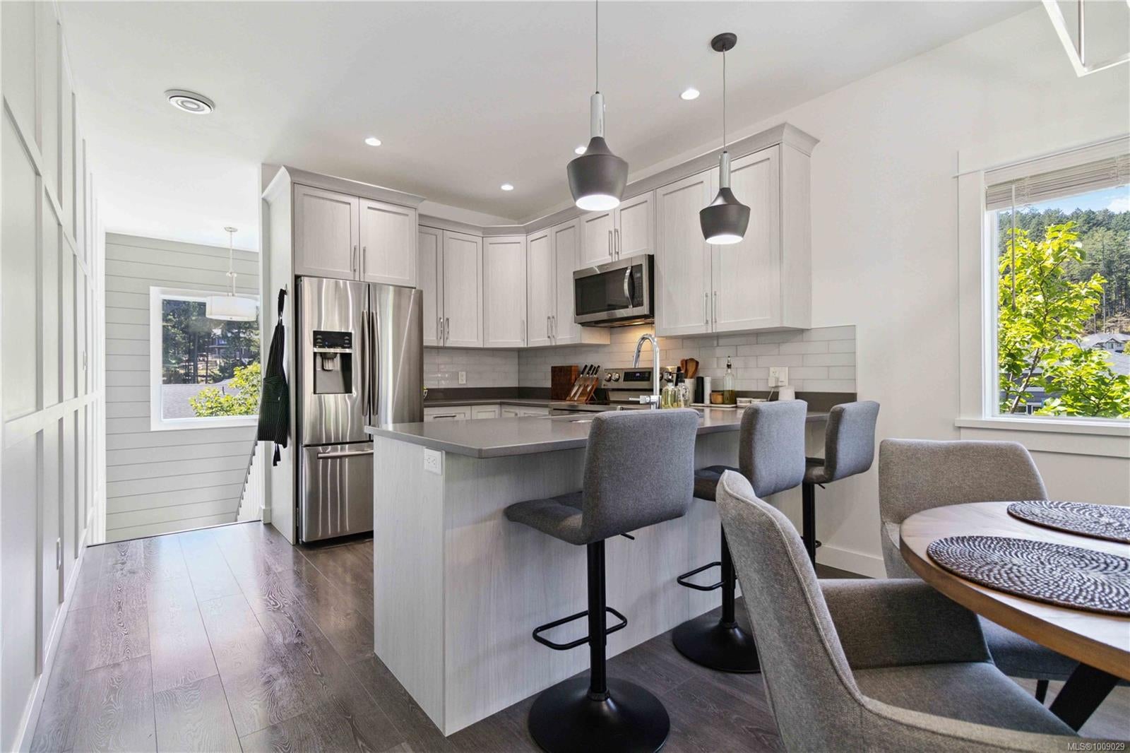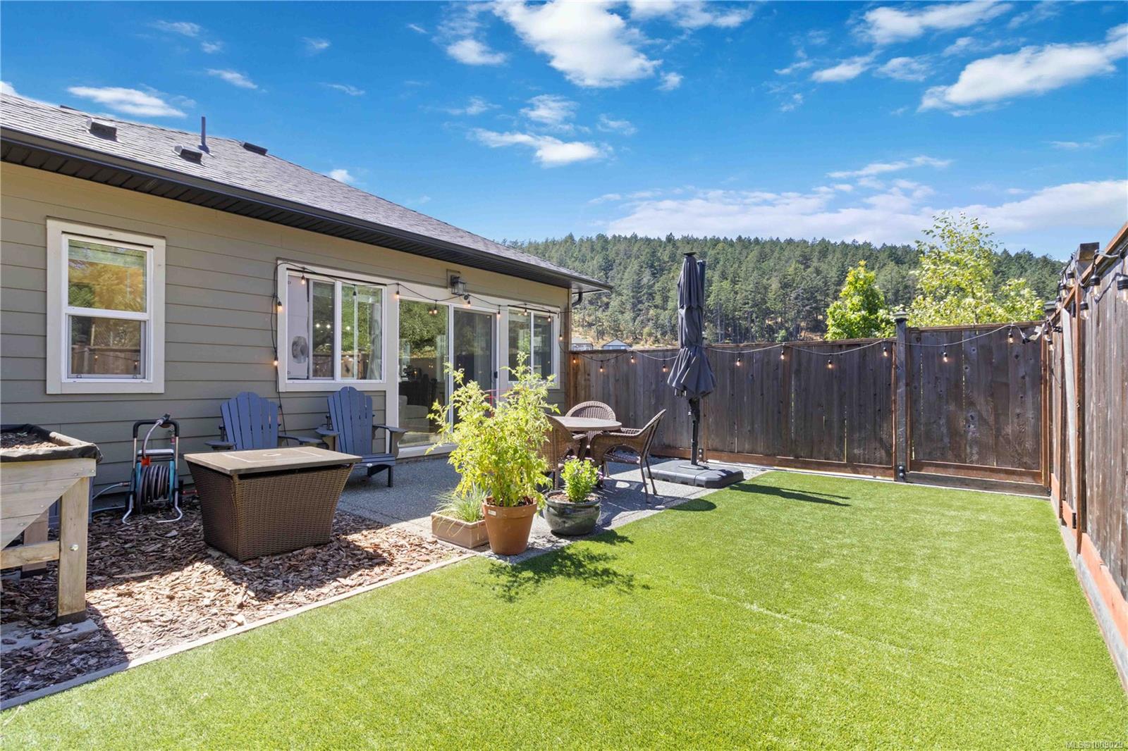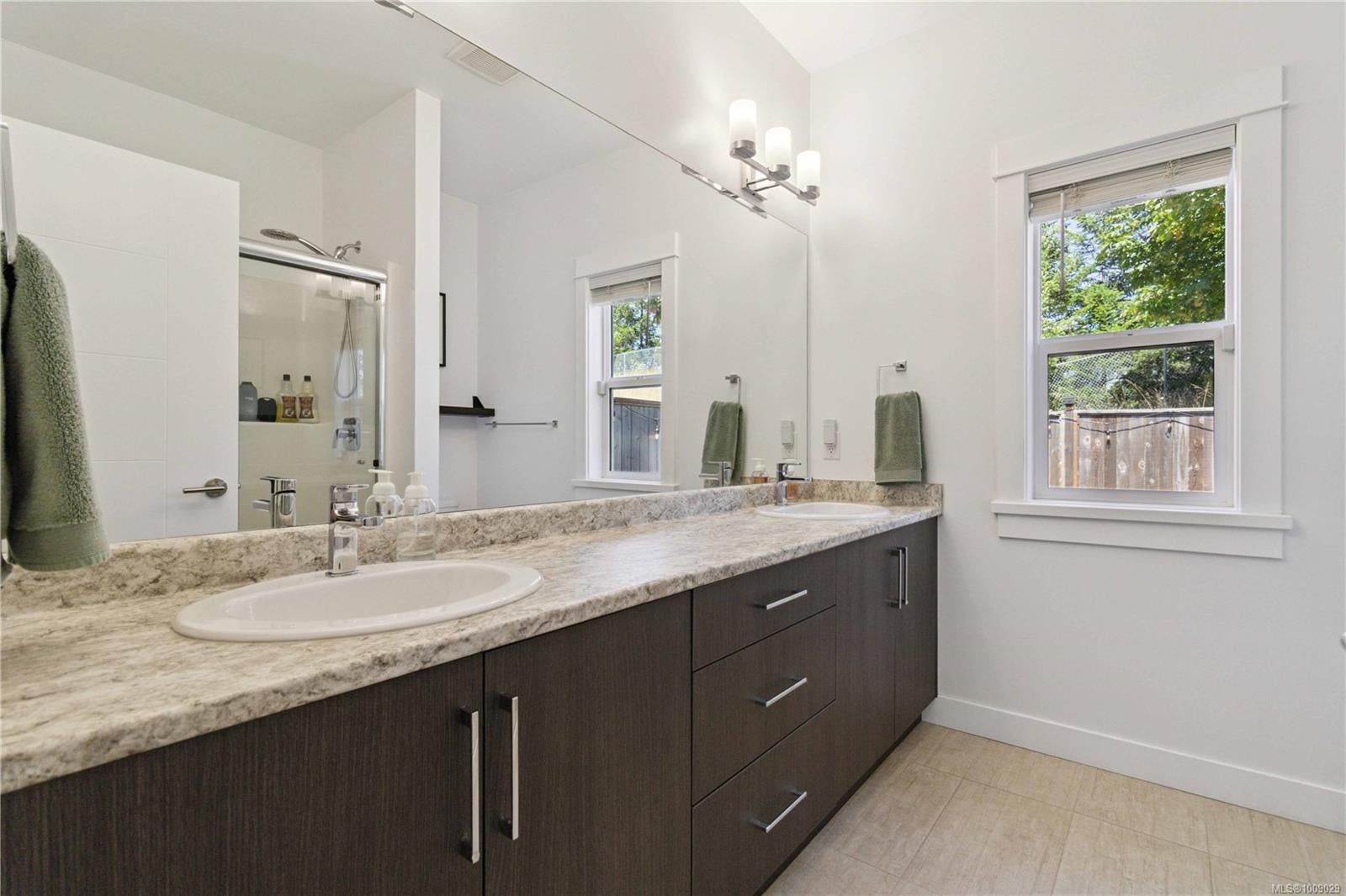 Stylish & spacious townhome just steps from Thetis Lake. This immaculate 2018-built duplex-style townhome offers a blend of modern design, comfort, and location. Inside, you'll be welcomed by custom touches like wainscoting and shiplap details throughout. The thoughtfully designed floor plan places the oversized primary bedroom on the main (upper) level, complete with a coffered ceiling, a large walk-in closet, and a beautiful ensuite. Enjoy indoor-outdoor living with a low-maintenance backyard featuring synthetic turf and a natural gas BBQ quick-connect, just off the main living area. The lower level offers flexibility with a spacious recreation room, two bedrooms, a full bathroom, and a dedicated home gym space. Includes energy-efficient features such as a direct-vent Rinnai natural gas furnace, on-demand hot water, & a cozy gas fireplace. Low strata fees & remaining home warranty! This home truly checks all the boxes in a prime location near nature.