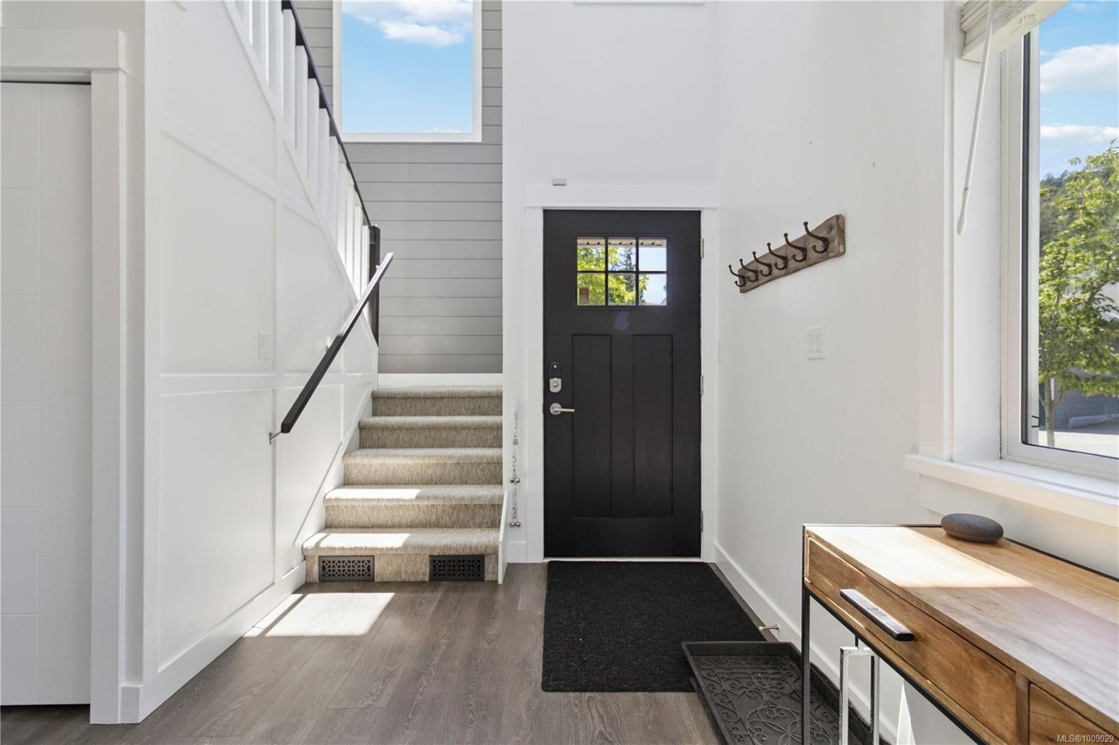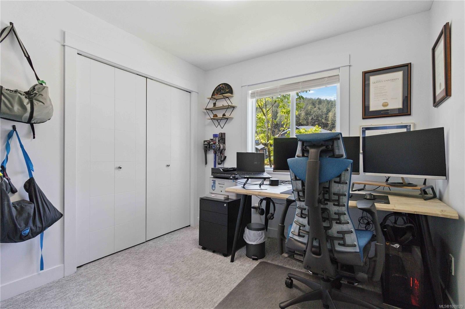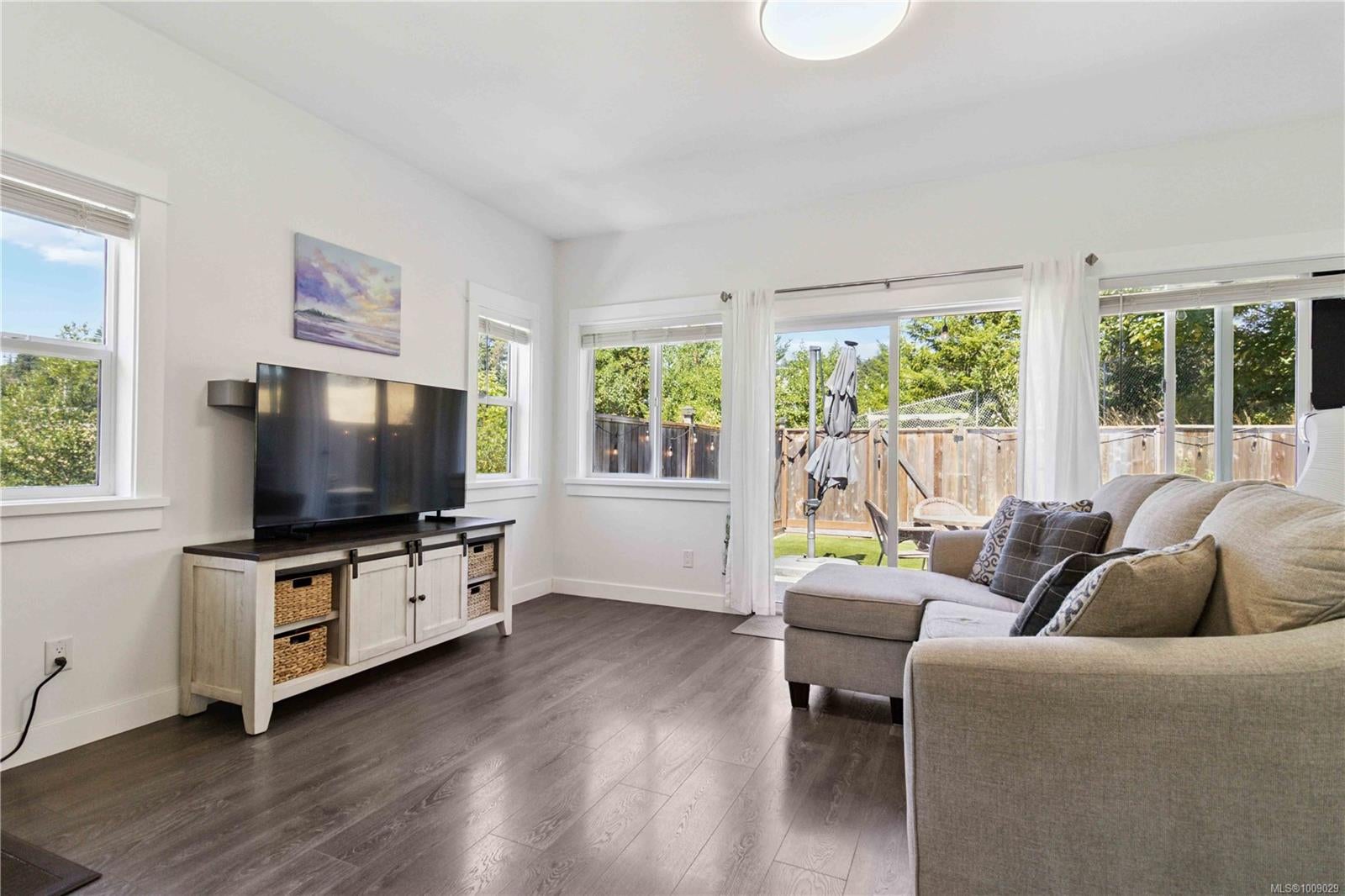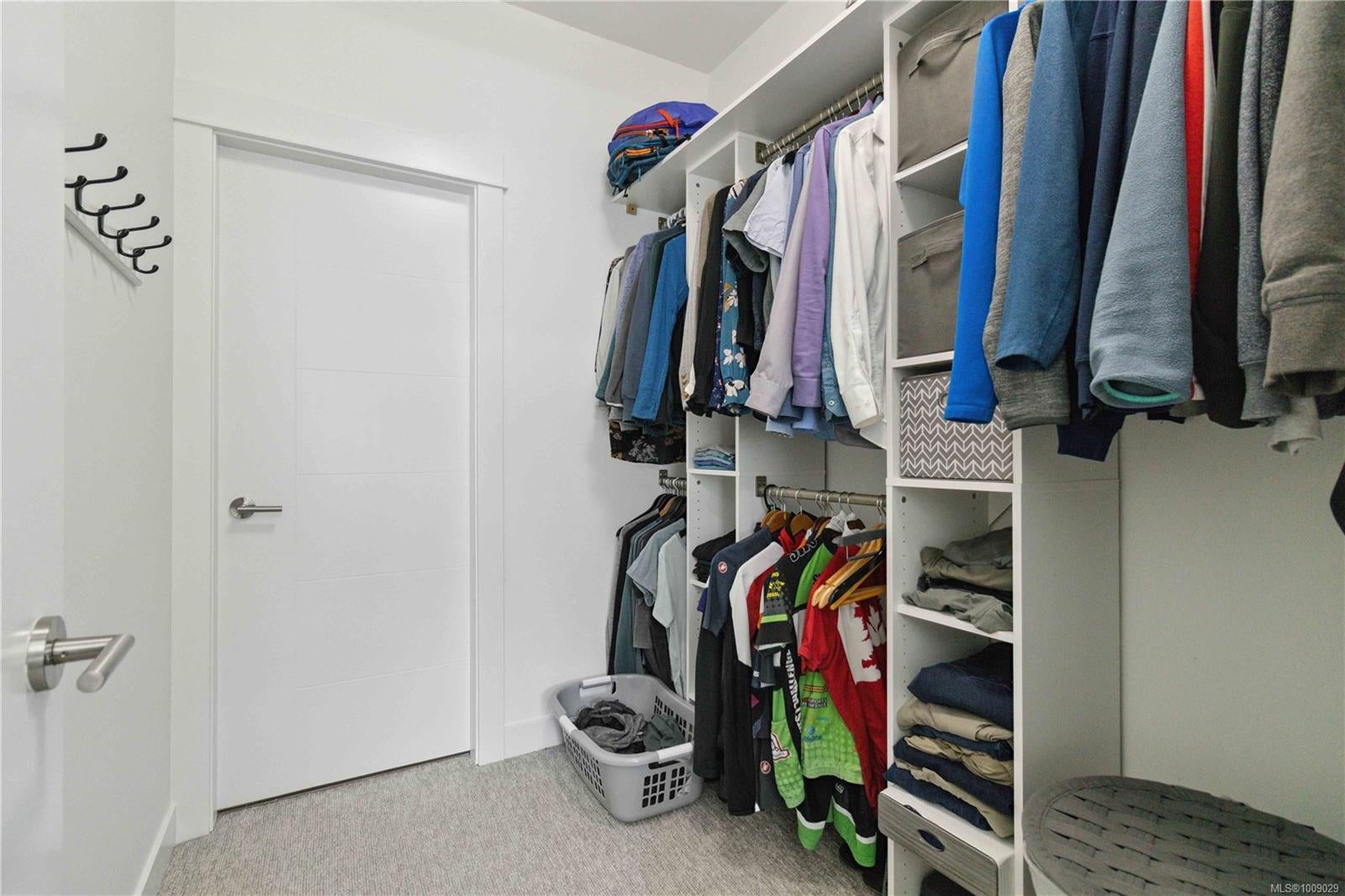 Stylish & spacious townhome just steps from Thetis Lake. This immaculate 2018-built duplex-style townhome offers a blend of modern design, comfort, and location. Inside, you'll be welcomed by custom touches like wainscoting and shiplap details throughout. The thoughtfully designed floor plan places the oversized primary bedroom on the main (upper) level, complete with a coffered ceiling, a large walk-in closet, and a beautiful ensuite. Enjoy indoor-outdoor living with a low-maintenance backyard featuring synthetic turf and a natural gas BBQ quick-connect, just off the main living area. The lower level offers flexibility with a spacious recreation room, two bedrooms, a full bathroom, and a dedicated home gym space. Includes energy-efficient features such as a direct-vent Rinnai natural gas furnace, on-demand hot water, & a cozy gas fireplace. Low strata fees & remaining home warranty! This home truly checks all the boxes in a prime location near nature.