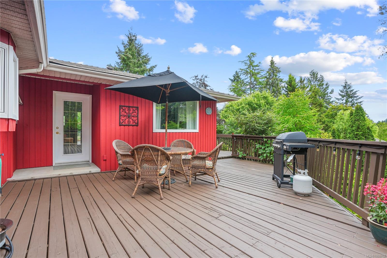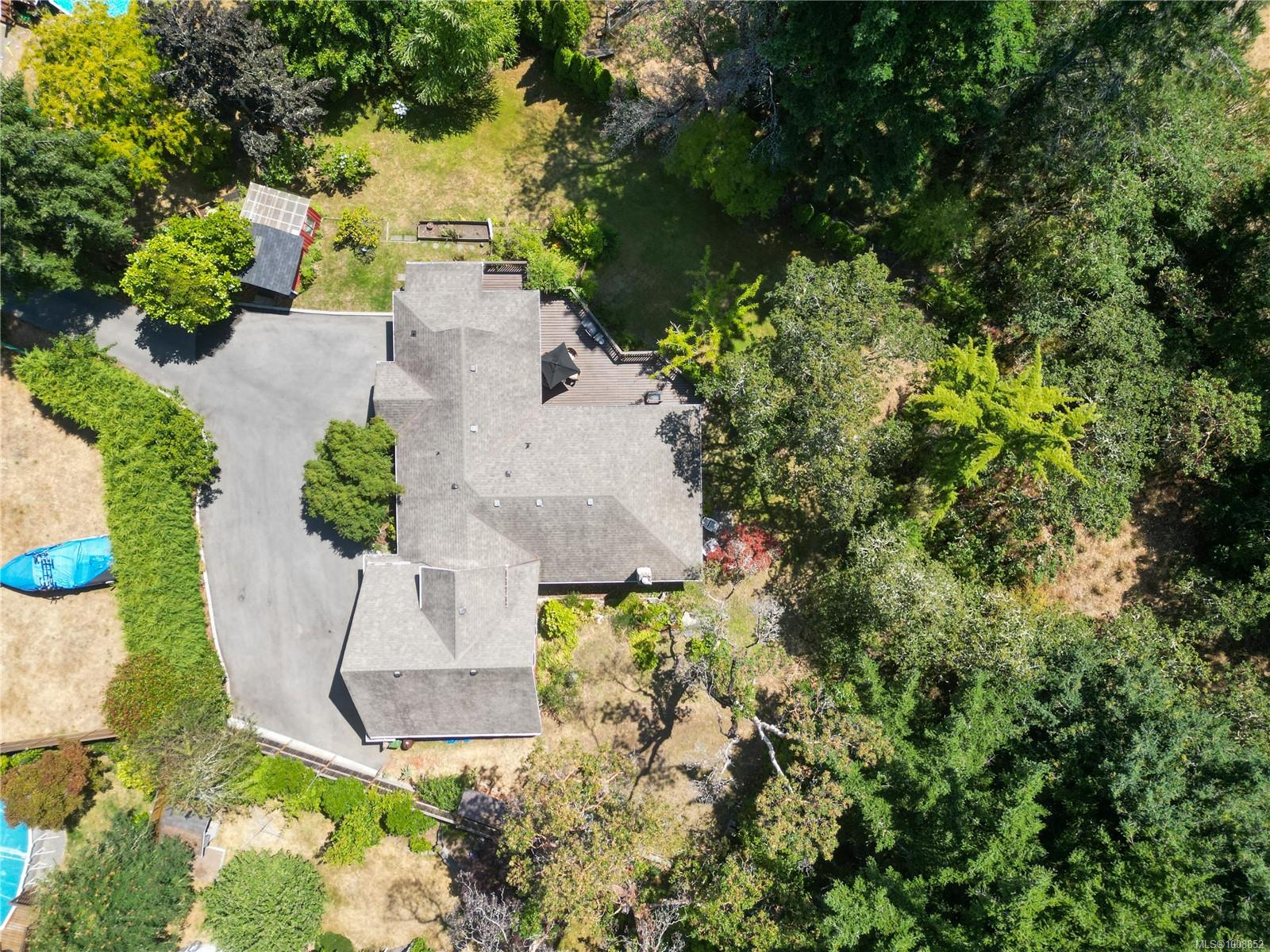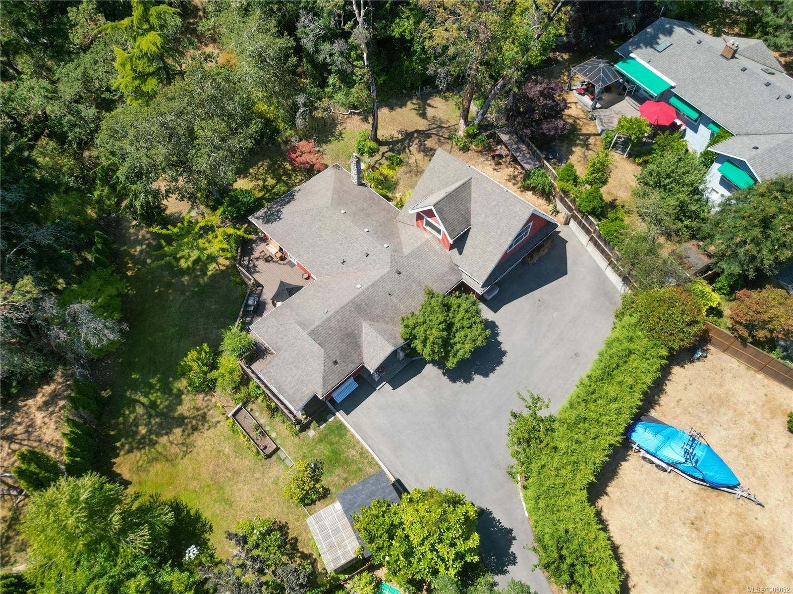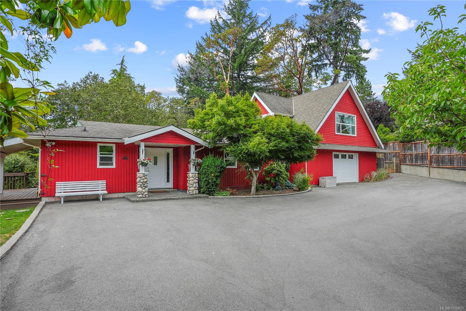 A rare gem! This Arts & Crafts-style farm-home sits on a large, stunning, private lot that backs directly onto a neighborhood park. Expansive wrap-around decks to enjoy and bright windows flood the interior space with natural light. The open-concept main level features dining and living rm complete w/cozy wood/fireplace and a custom kitchen with a large island and eating bar—perfect for entertaining. The coveted main floor primary bedroom offers a walk-in closet, and 4-piece ensuite, and 2 additional bedrms. Upstairs, includes 3rd and 4th bedrooms, great for a family or guest/hobby rm. Updated in 2001 & newer windows and recent new carpet. Handy single garage/workshop area and exterior shed! Enjoy a large deck for outdoor living & a lovely backyard to grow and play. All nestled on a quiet cul-de-sac situated in the Brentwood Bay community! A warm, inviting home in a magical setting—this one is a must-see!