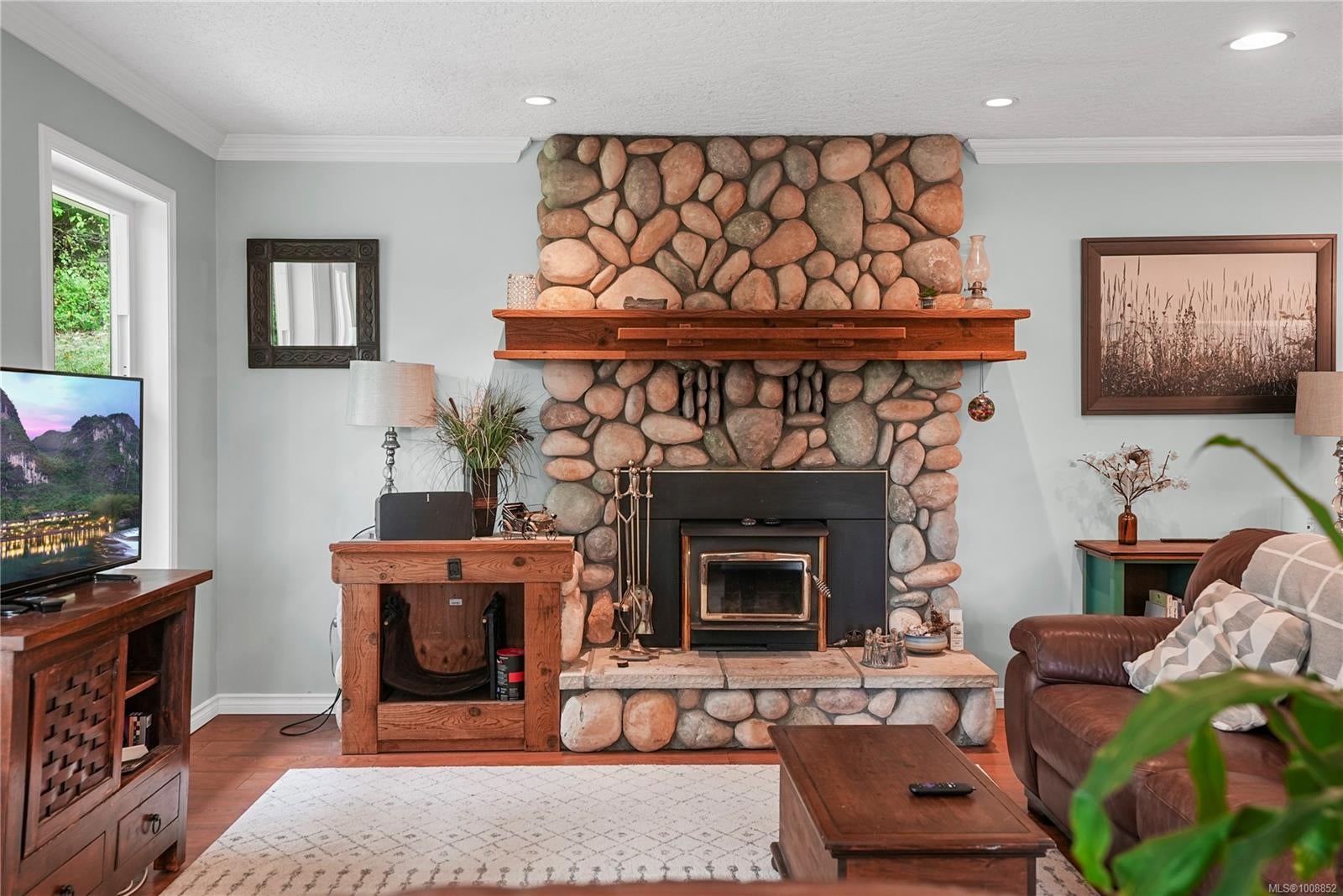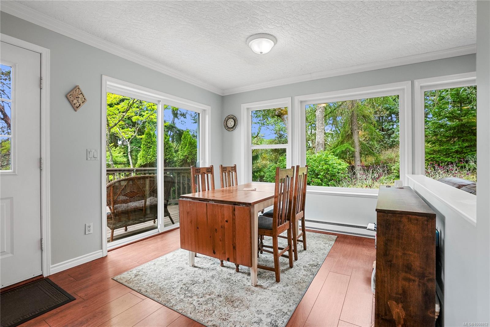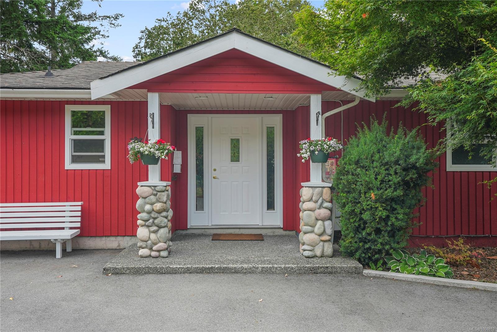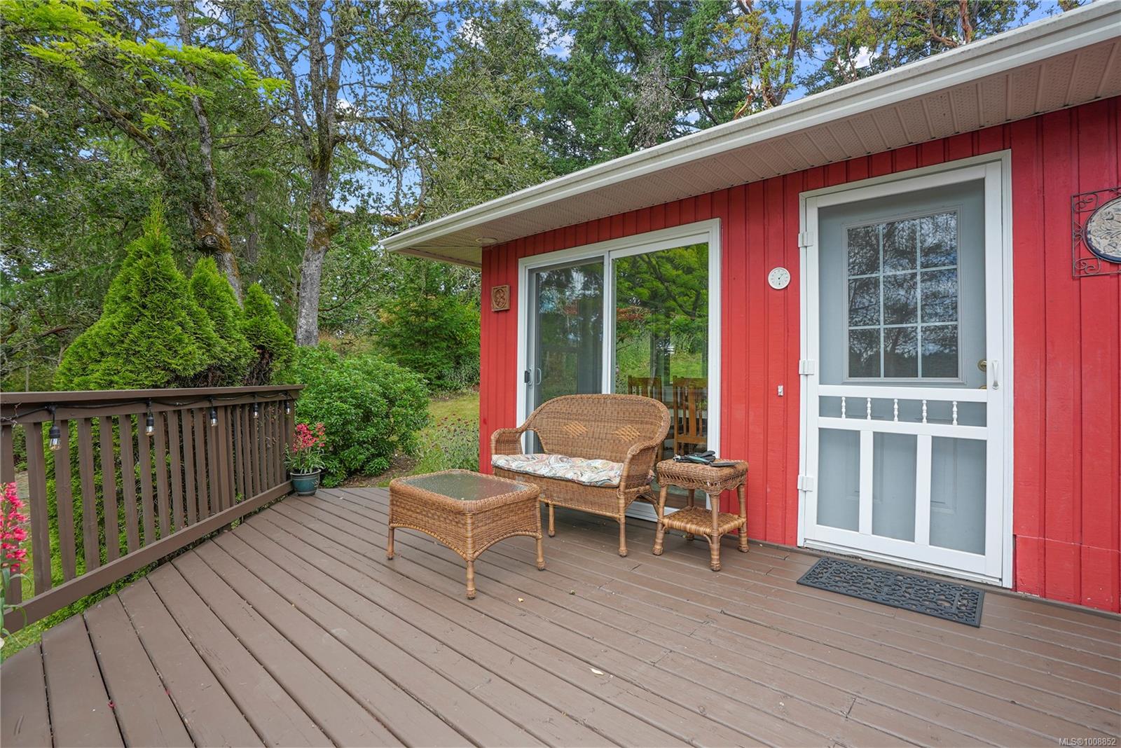 A rare gem! This Arts & Crafts-style farm-home sits on a large, stunning, private lot that backs directly onto a neighborhood park. Expansive wrap-around decks to enjoy and bright windows flood the interior space with natural light. The open-concept main level features dining and living rm complete w/cozy wood/fireplace and a custom kitchen with a large island and eating bar—perfect for entertaining. The coveted main floor primary bedroom offers a walk-in closet, and 4-piece ensuite, and 2 additional bedrms. Upstairs, includes 3rd and 4th bedrooms, great for a family or guest/hobby rm. Updated in 2001 & newer windows and recent new carpet. Handy single garage/workshop area and exterior shed! Enjoy a large deck for outdoor living & a lovely backyard to grow and play. All nestled on a quiet cul-de-sac situated in the Brentwood Bay community! A warm, inviting home in a magical setting—this one is a must-see!