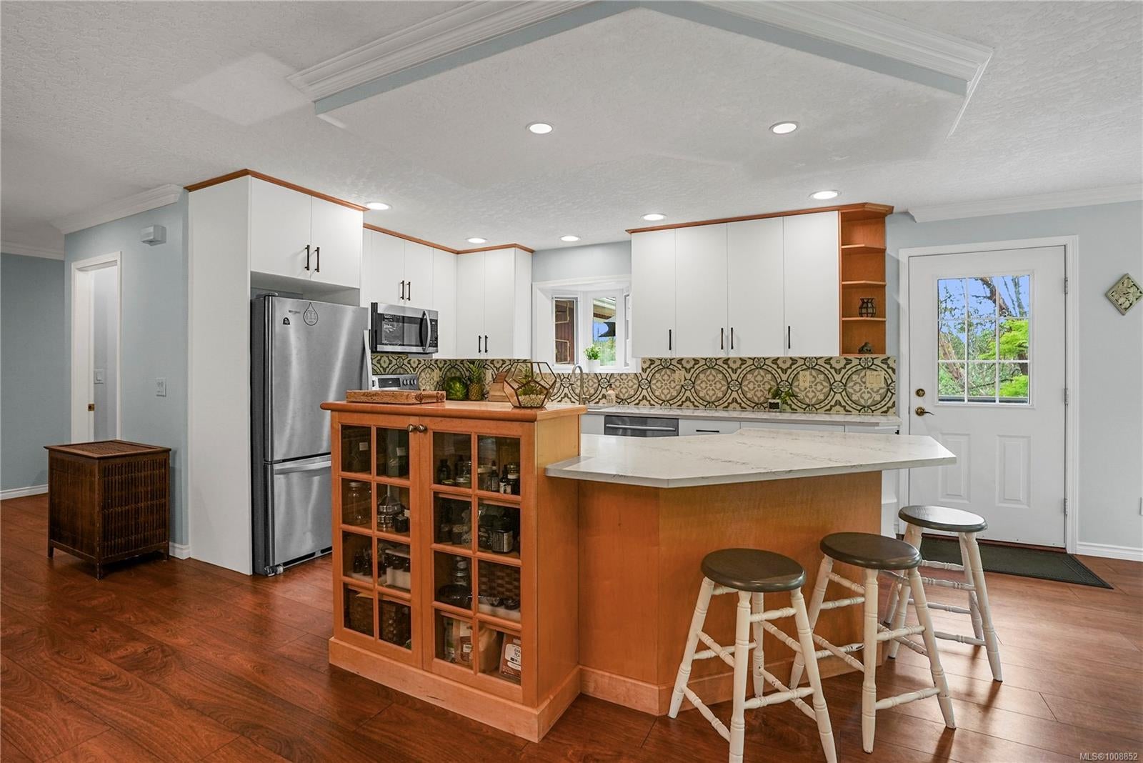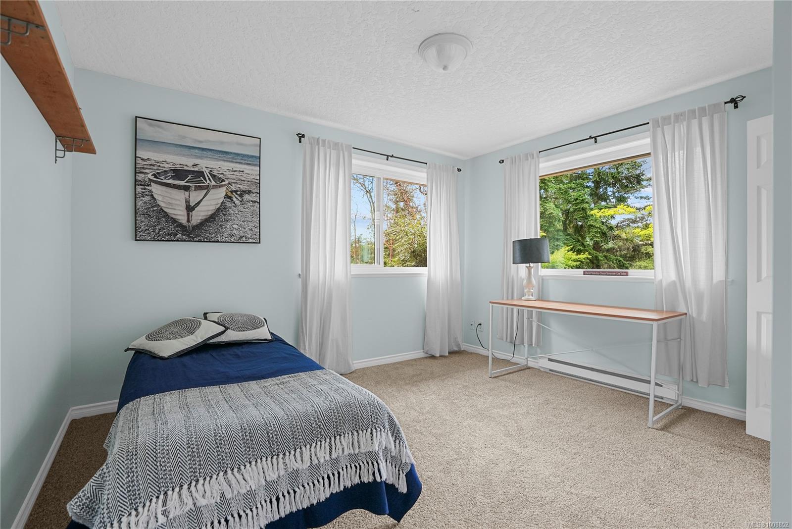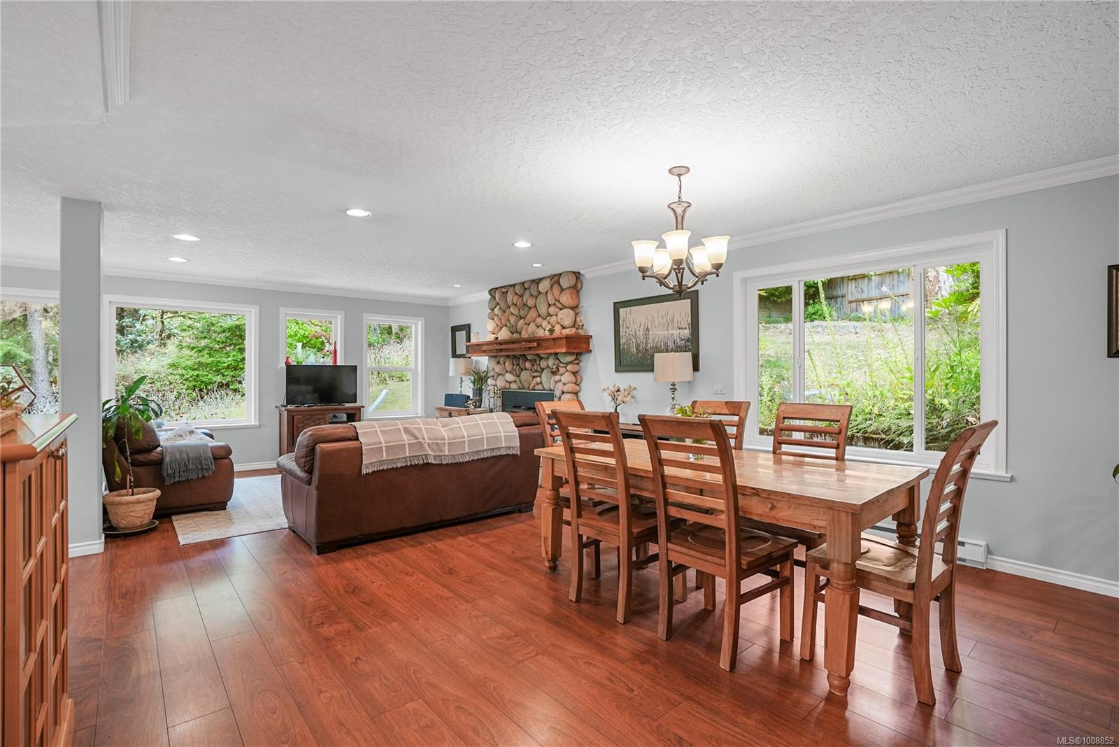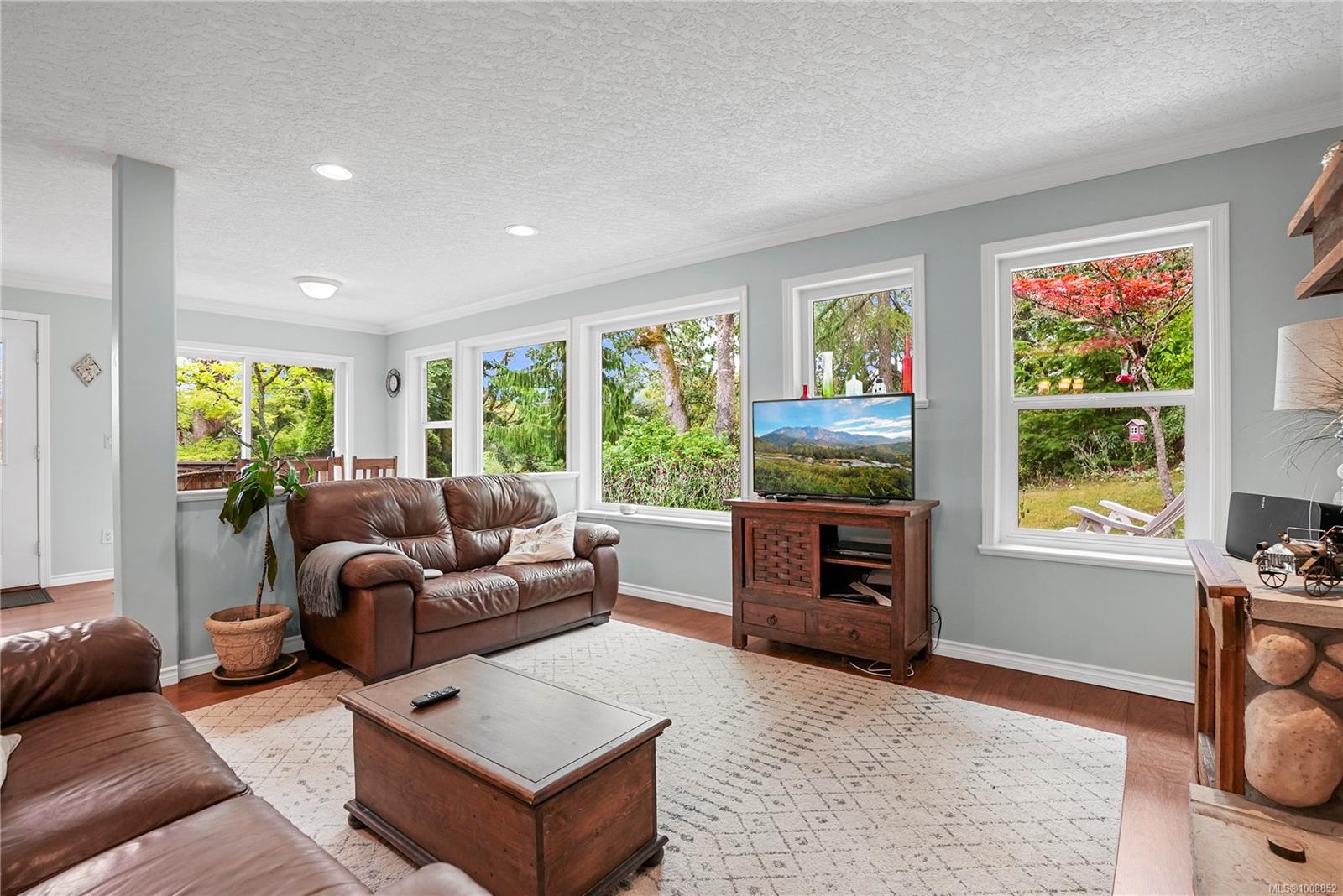 A rare gem! This Arts & Crafts-style farm-home sits on a large, stunning, private lot that backs directly onto a neighborhood park. Expansive wrap-around decks to enjoy and bright windows flood the interior space with natural light. The open-concept main level features dining and living rm complete w/cozy wood/fireplace and a custom kitchen with a large island and eating bar—perfect for entertaining. The coveted main floor primary bedroom offers a walk-in closet, and 4-piece ensuite, and 2 additional bedrms. Upstairs, includes 3rd and 4th bedrooms, great for a family or guest/hobby rm. Updated in 2001 & newer windows and recent new carpet. Handy single garage/workshop area and exterior shed! Enjoy a large deck for outdoor living & a lovely backyard to grow and play. All nestled on a quiet cul-de-sac situated in the Brentwood Bay community! A warm, inviting home in a magical setting—this one is a must-see!