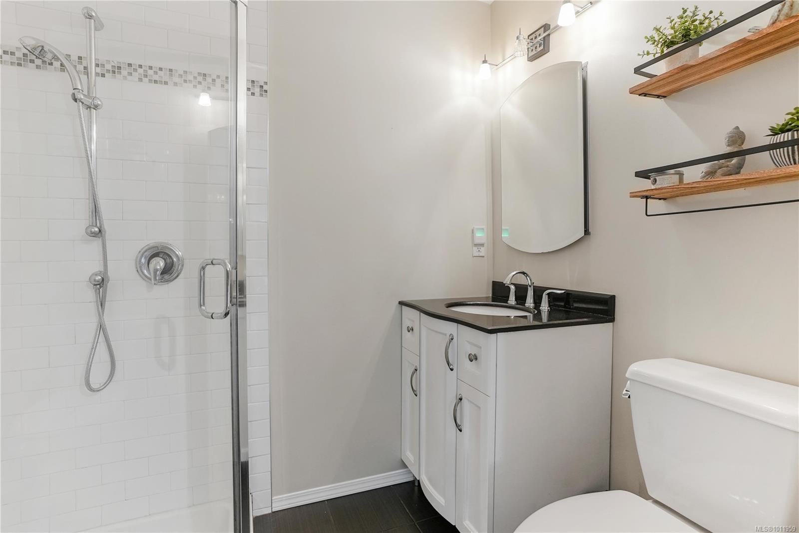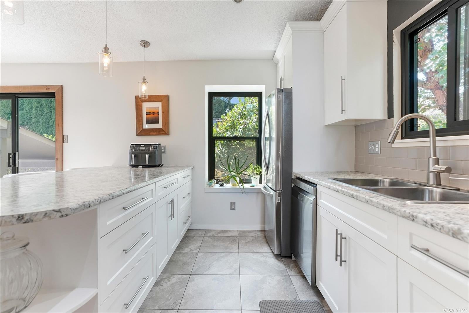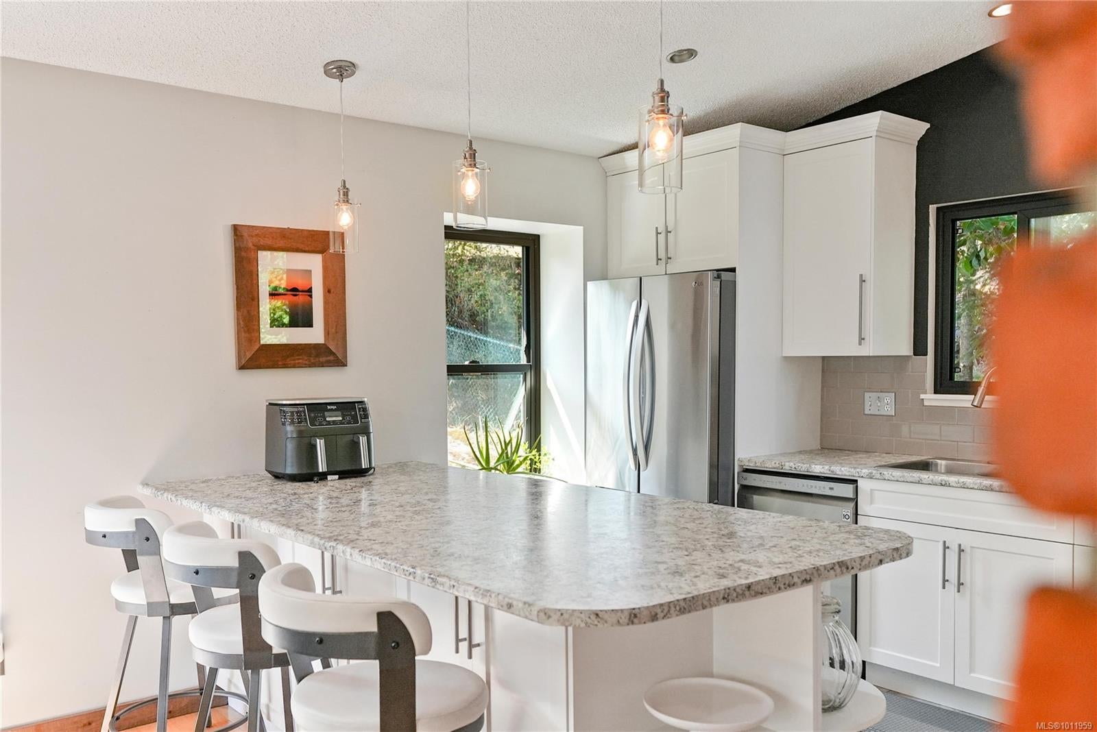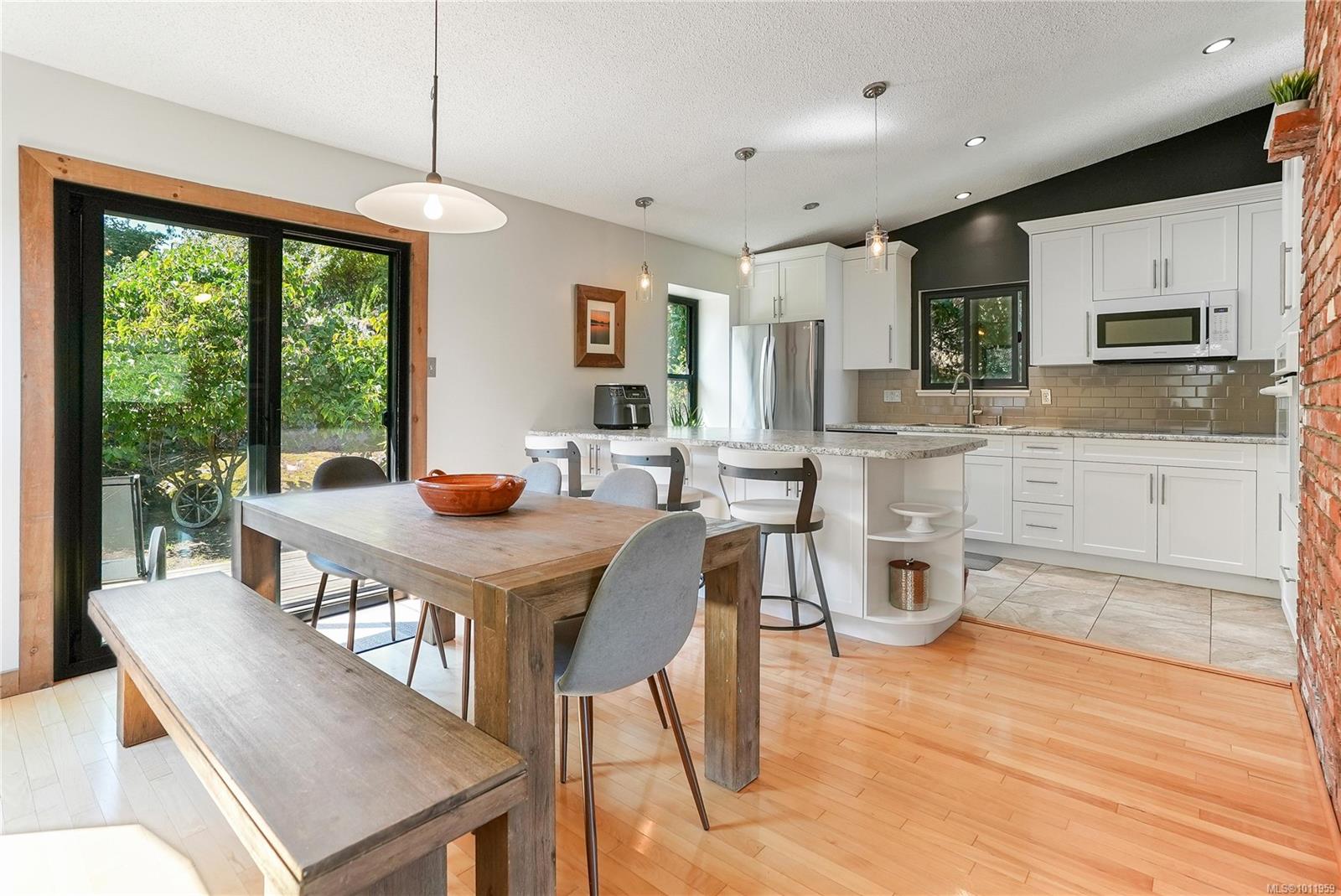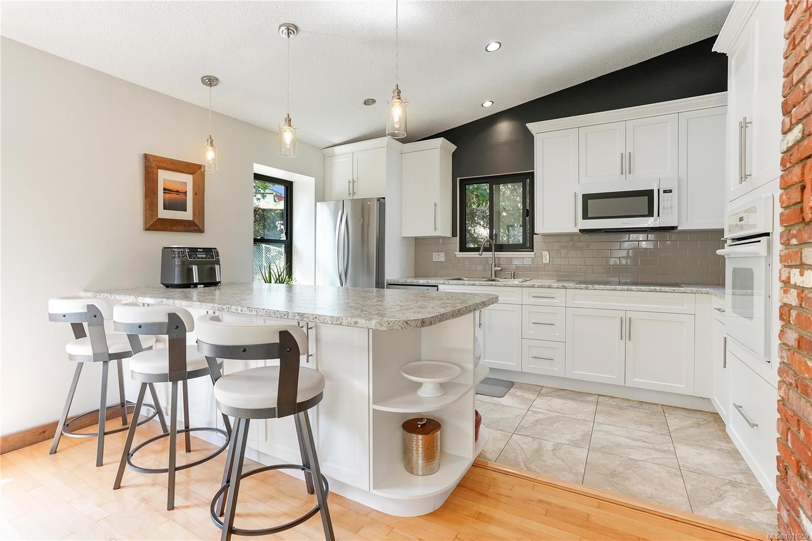 NEW PRICE! Updated, family-friendly, 3 bed/2 bath bright and inviting home situated in a private neighborhood near Oceanview Park. Features vaulted ceilings & great access to the fully fenced southwest-facing backyard, perfect for soaking up the sun on the deck & enjoying the covered hot tub. Recent upgrades include nice windows, roof and skylights, plus a newer washer/dryer. Inside, the main living area is warm and inviting with wood flooring & classic brick feature fireplace. Enjoy views of the mountains from your living rm & landscaped yard. Updated kitchen, w/timeless white shaker cabinetry, wall oven, built-in microwave, & cooktop will inspire any home chef. The primary bedroom includes a walk-in closet and a beautifully renovated 3-piece ensuite w/heated tile flooring. Flex rm on the lower level + workshop and loads of driveway parking. Easy access to the stand-up crawlspace offers plenty of dry storage. Modern conveniences, schools, and shopping are all close by!