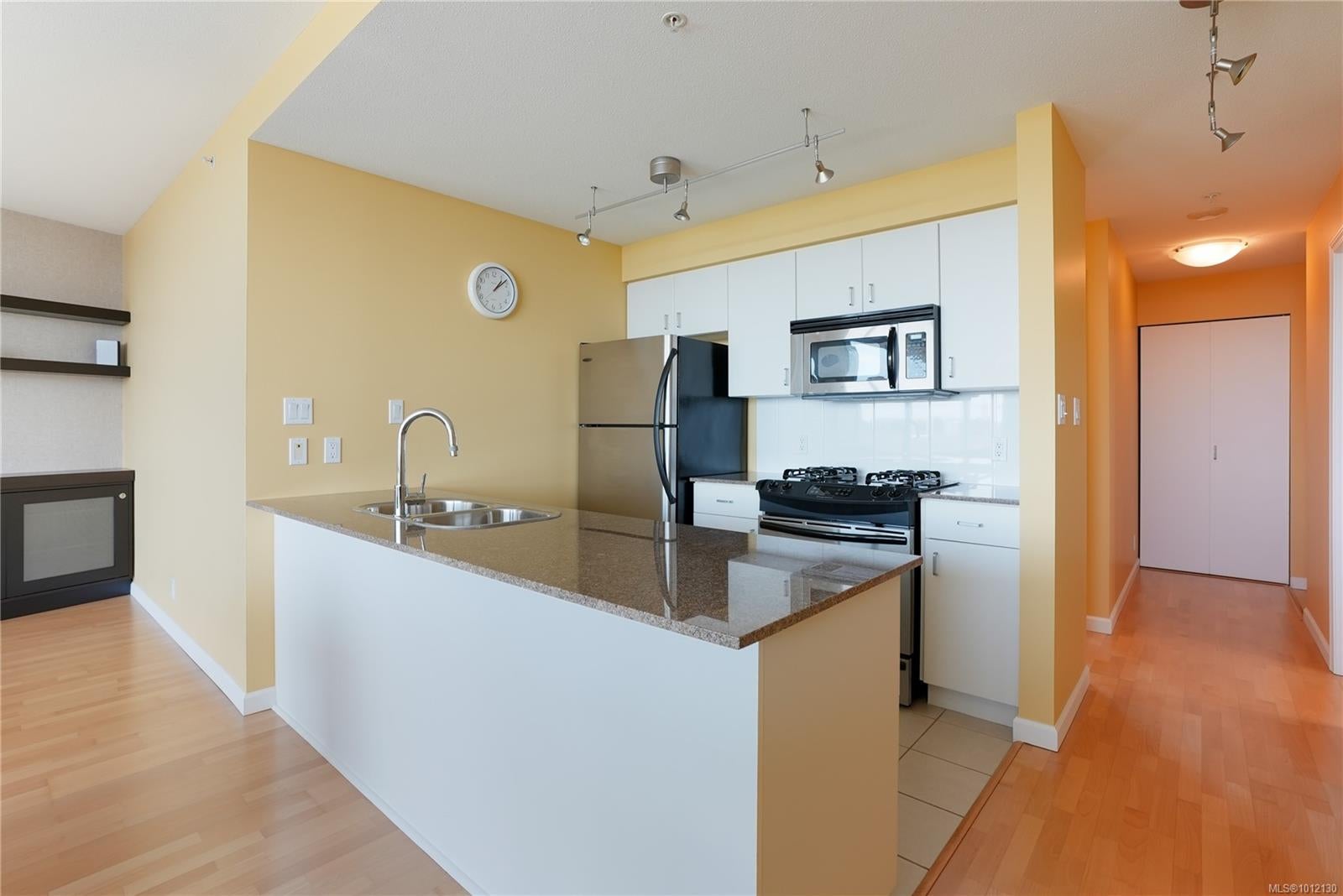 Location, Location, Location! Welcome to this bright and sunny 2 bedroom condo set in a superb location with all of the amenities at your fingertips, so you can leave your car at home!! With only one party wall, this corner unit is quiet and feels rather private with floor to ceiling windows, a large deck and sweeping views over the park towards the harbour and olympic mountains. Not only does this building have an awesome location, and park-like setting, easy access to transit and bike routes to safely ride into downtown in minutes, it also has EV ready parking, a great fitness centre and lounge area with a pool table for entertaining your friends. Come by and check it out today!!