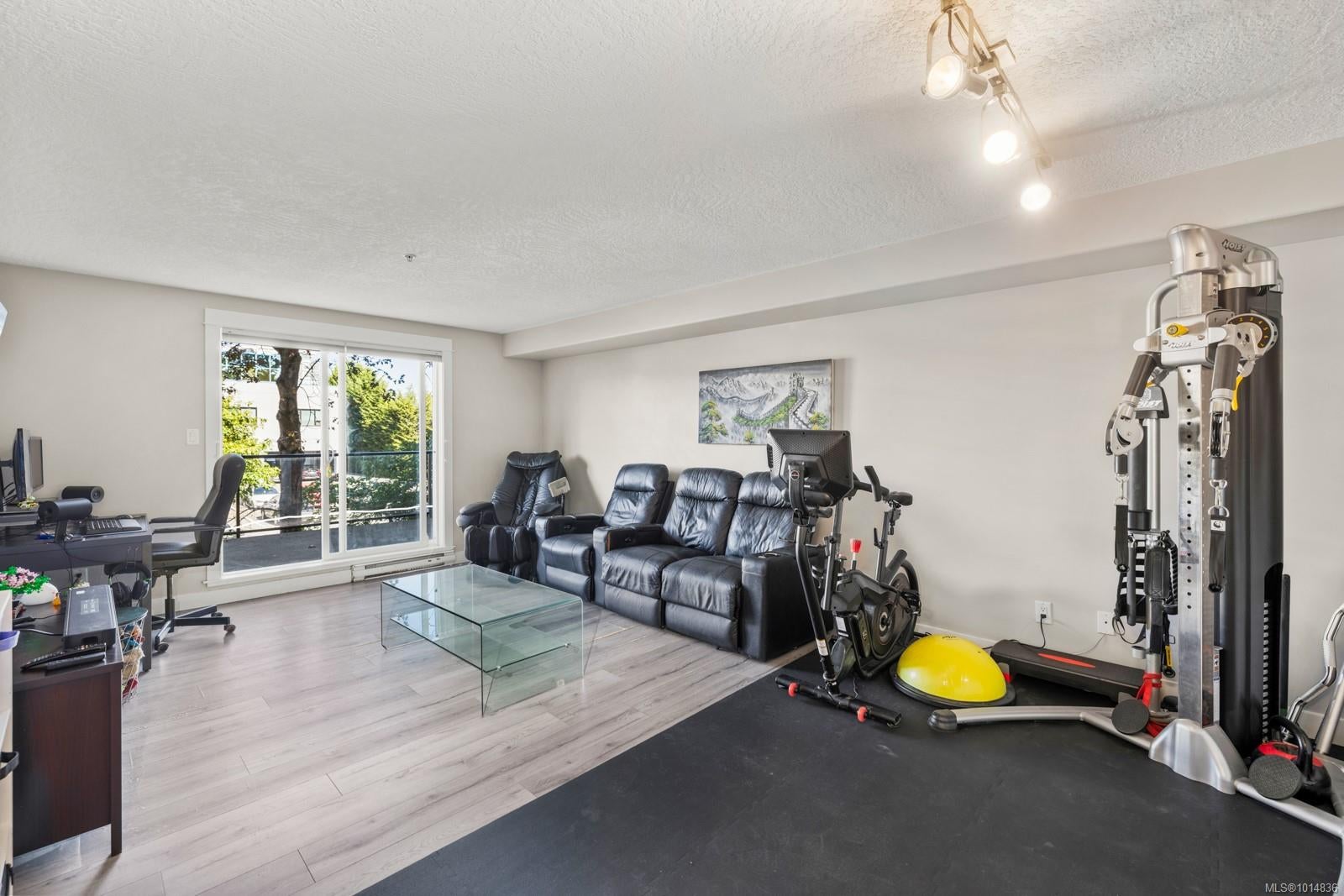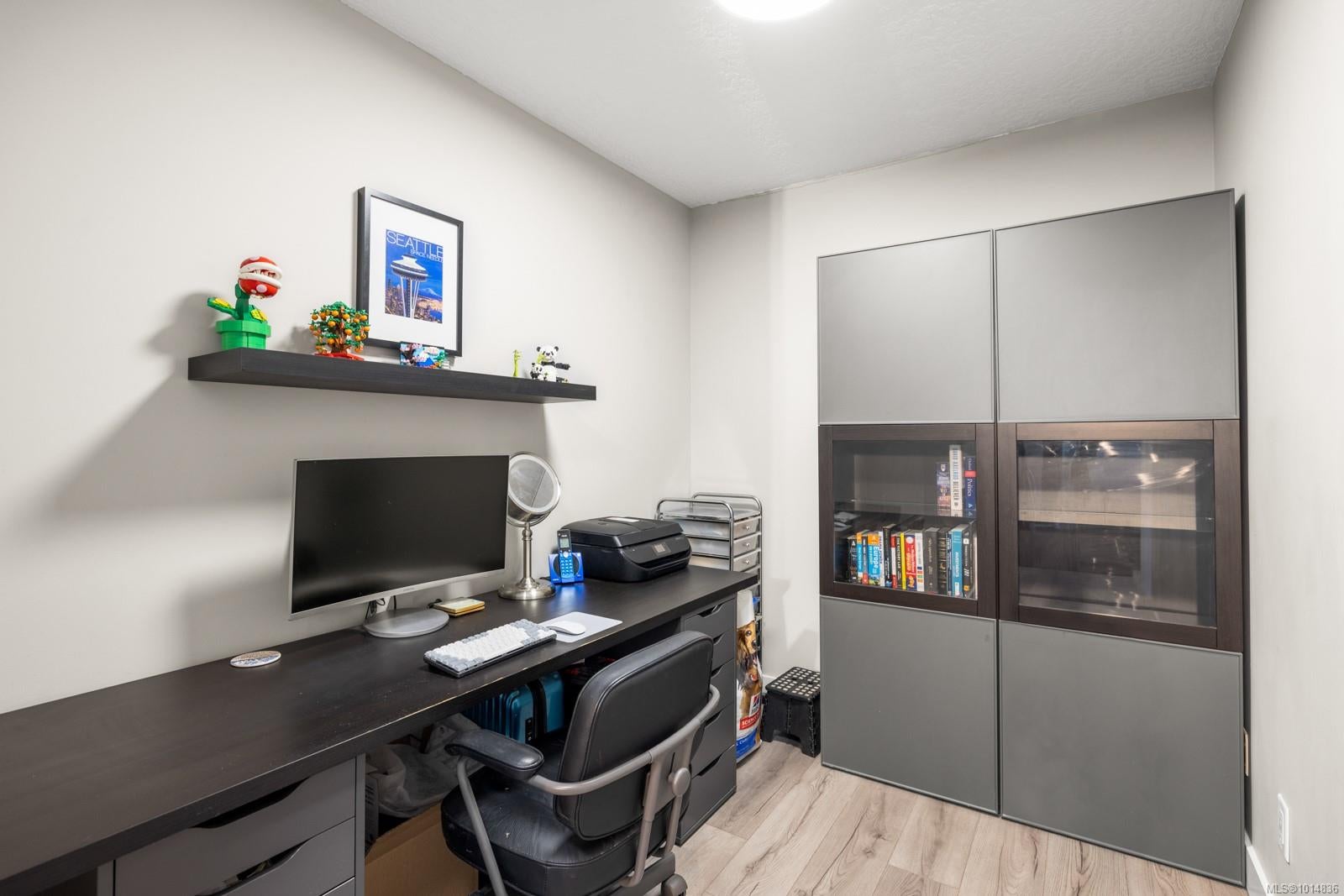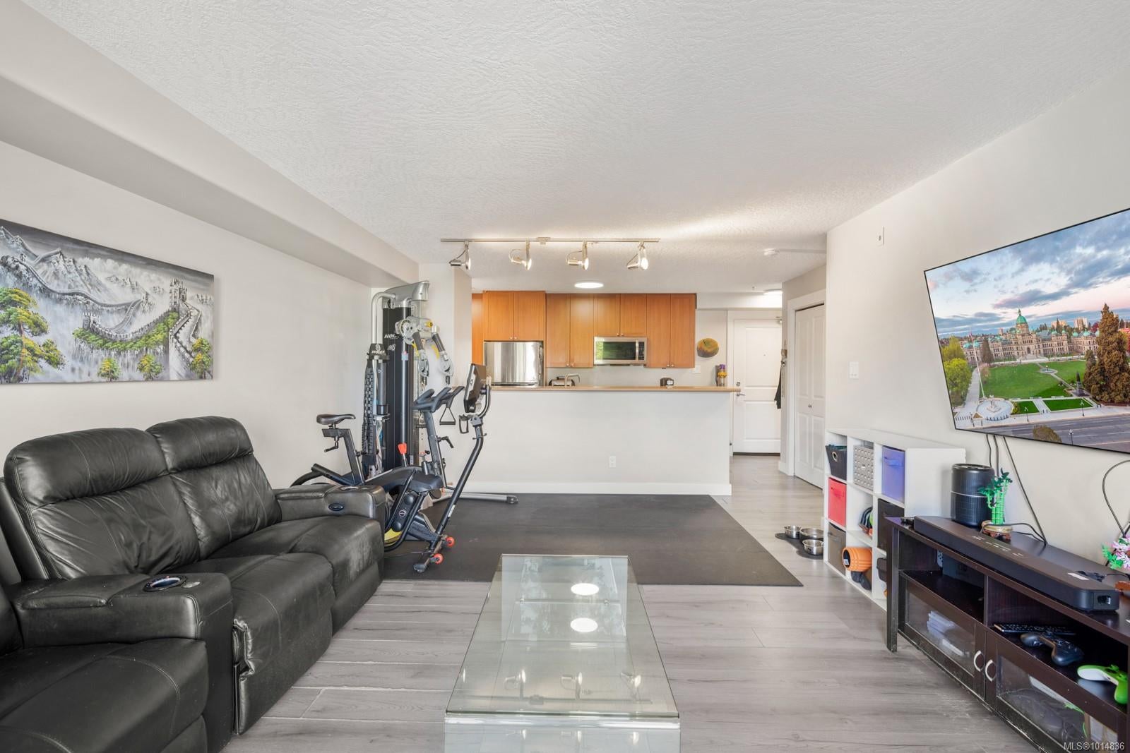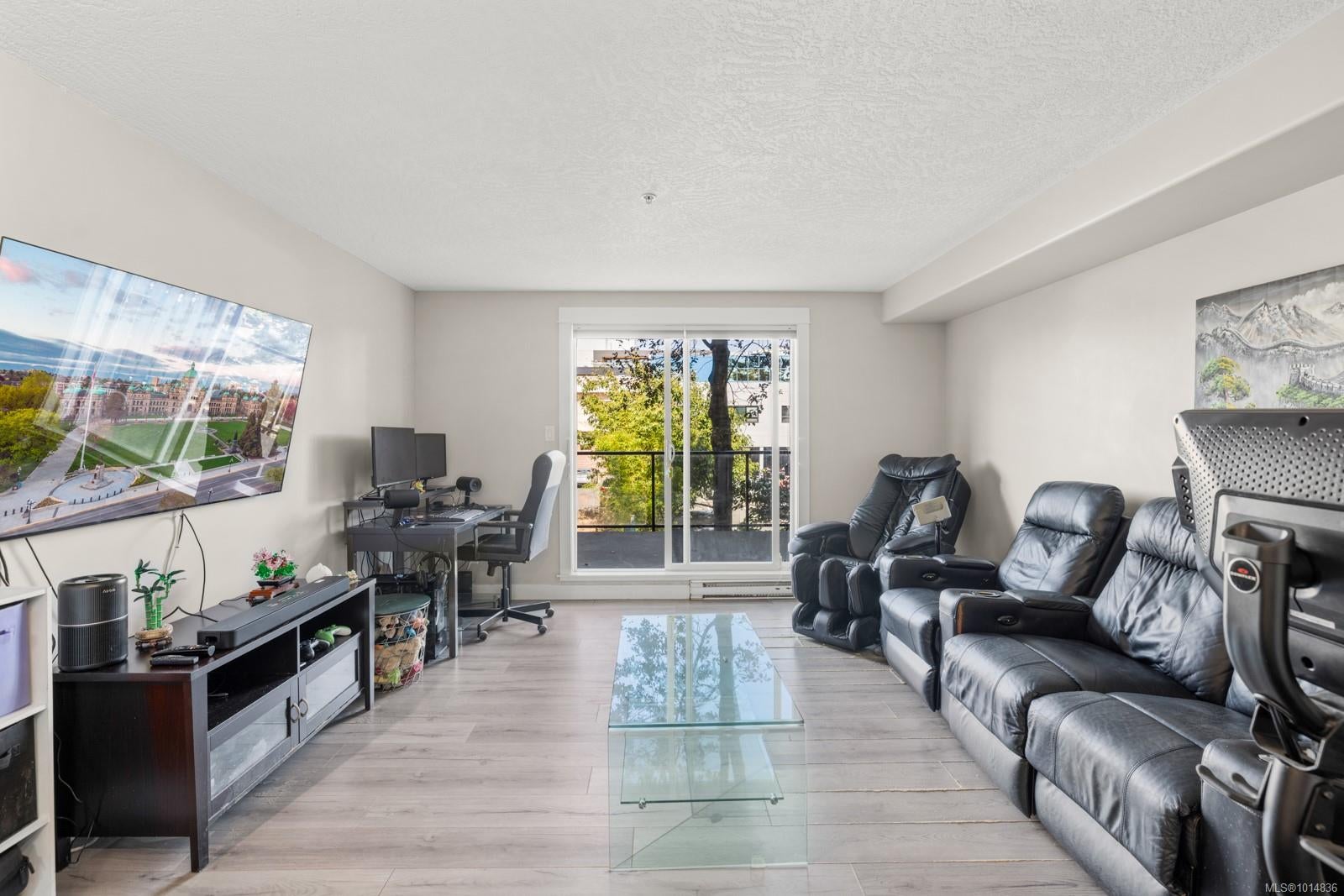 STEPS TO VIBRANT LANFORD CITY CENTRE! This spacious & private 1-bedroom plus DEN condo is a perfect starter or downsizer close to everything to walk to! Featuring a large open floor plan, a nice kitchen with eating bar, in-unit laundry, and a huge 420 sqft deck perfect for patio furniture, BBQ’s and summer entertaining. The Valentine is a well-maintained strata with parking & hot water included, pets are welcome, and the unit is rentable, making this a great place to call home. All located just steps away from downtown Langford, shopping, newly constructed UVIC & Royal Roads facility, restaurants, bus routes, and much more. Bonus: $10k allowance towards new flooring choice for new owners. A lovely community and a very convenient neighborhood to enjoy. Book your appt to view soon.