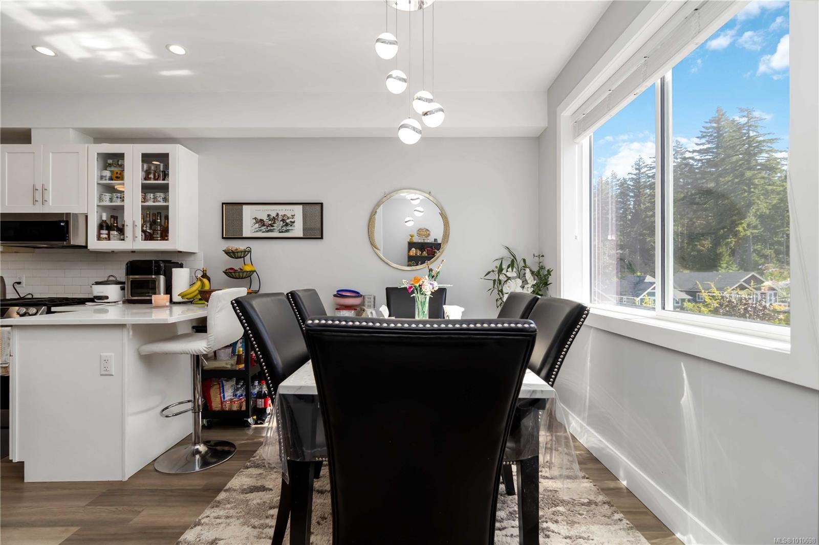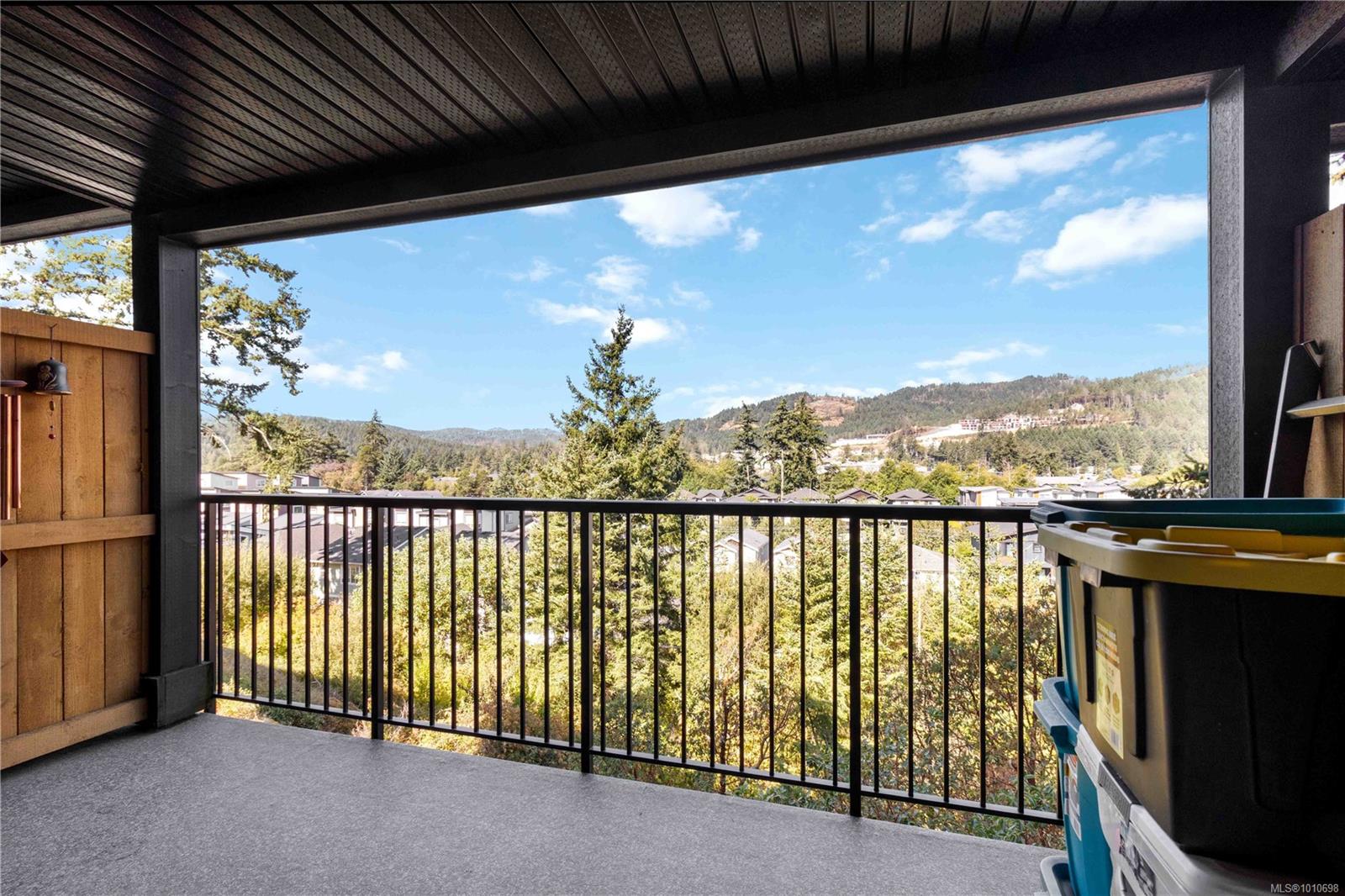Welcome to Turnstone Ridge in Happy Valley! Built in 2021, this thoughtfully designed townhome offers 1,377 sq.ft. of stylish and functional living space, featuring 3 bedrooms, 2.5 bathrooms, a heat pump with A/C, and an on-demand hot water system. The main floor boasts an open-concept layout with high-quality finishes, including a bright and modern kitchen with crisp white cabinetry, quartz countertops, stainless steel appliances, and a gas range. A cozy gas fireplace anchors the living space, while large windows and a spacious sundeck provide natural light & beautiful mountain & valley views. Upstairs, you’ll find two generously sized bedrooms, a full bathroom, & a convenient laundry area. The lower level includes a single-car garage with EV charger, a third bedroom with its own 2-piece bath, & private patio. Located in a family-friendly neighbourhood, steps from Happy Valley Elementary, local parks, & the Galloping Goose Trail, with all the amenities of Langford just minutes away.