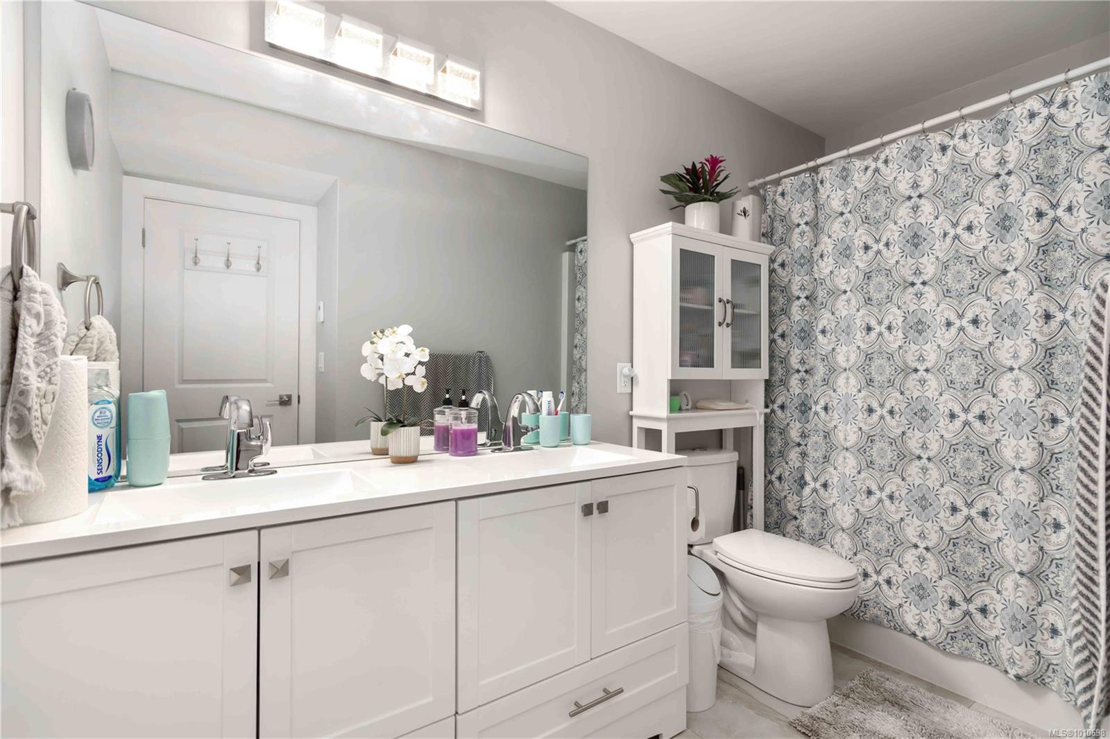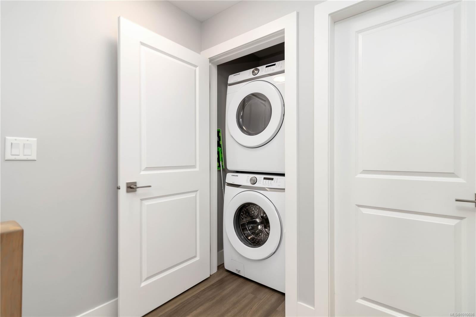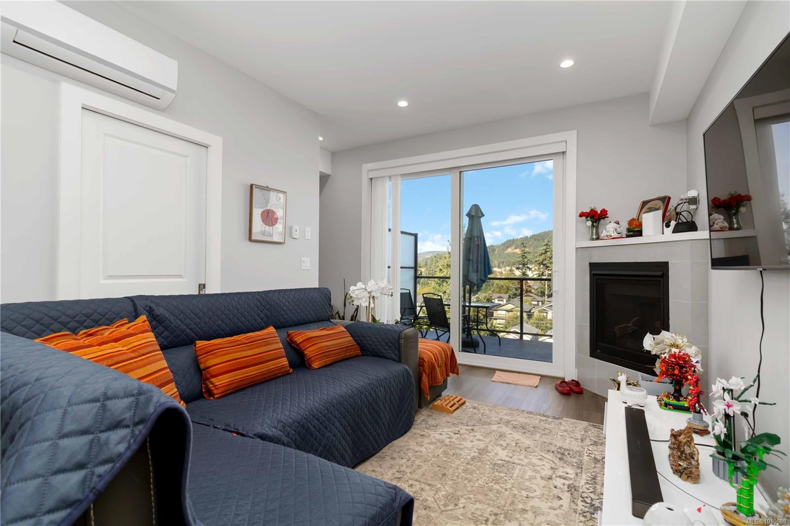 Welcome to Turnstone Ridge in Happy Valley! Built in 2021, this thoughtfully designed townhome offers 1,377 sq.ft. of stylish and functional living space, featuring 3 bedrooms, 2.5 bathrooms, a heat pump with A/C, and an on-demand hot water system. The main floor boasts an open-concept layout with high-quality finishes, including a bright and modern kitchen with crisp white cabinetry, quartz countertops, stainless steel appliances, and a gas range. A cozy gas fireplace anchors the living space, while large windows and a spacious sundeck provide natural light & beautiful mountain & valley views. Upstairs, you’ll find two generously sized bedrooms, a full bathroom, & a convenient laundry area. The lower level includes a single-car garage with EV charger, a third bedroom with its own 2-piece bath, & private patio. Located in a family-friendly neighbourhood, steps from Happy Valley Elementary, local parks, & the Galloping Goose Trail, with all the amenities of Langford just minutes away.