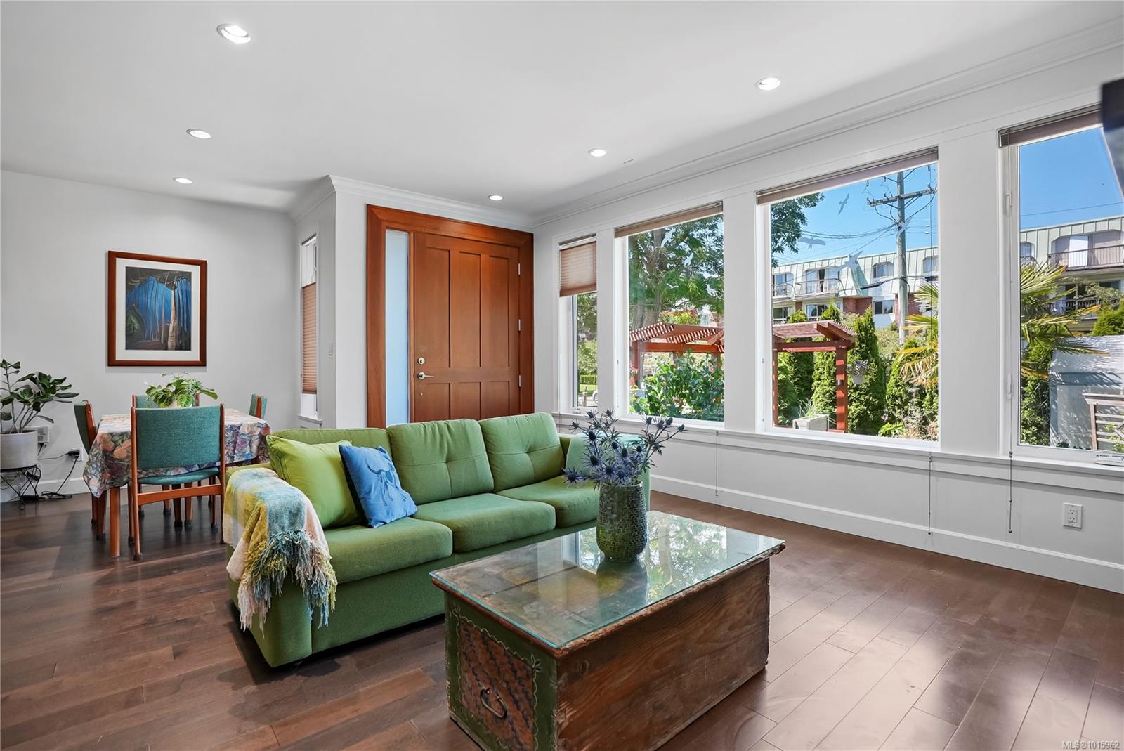 AMAZING JAMES BAY BY THE OCEAN! This modern-designed 4 Bed/4 Bath home is just steps to the ocean, and is located in one of Victoria’s premier neighbourhoods! Live the Victoria lifestyle in this iconic location—walk to Dallas Rd, Ogden Point. parks or downtown! This 2000 sq ft+ front duplex offers modern West Coast living across 3 levels. Designed by an award-winning builder, it features open-concept living rm w/cozy gas F/P, radiant in-floor heat, hardwood floors, quartz counters, on-demand hot water, and stainless steel appls. The top-floor primary suite includes a spa-inspired ensuite and a private balcony. Bonus: lower level, great for teens or theatre rm and guest rm. A great option for an in-law suite or extended family. Garage/workshop for all your storage needs and beautifully landscaped gardens. Close to downtown, Beacon Hill Park, coffee shops, restaurants, and much more. Great value here! One of Victoria's most desirable communities to live in.