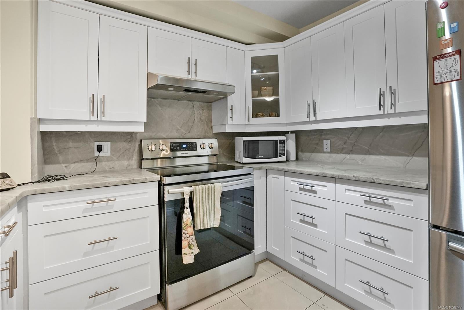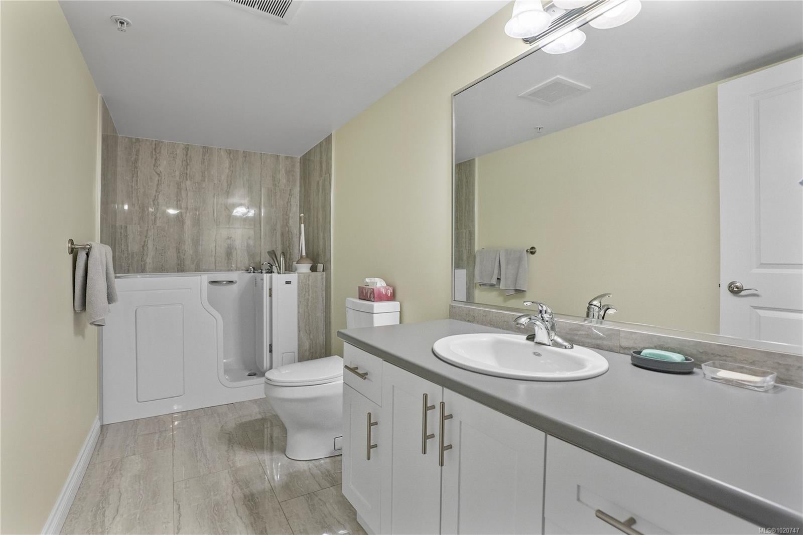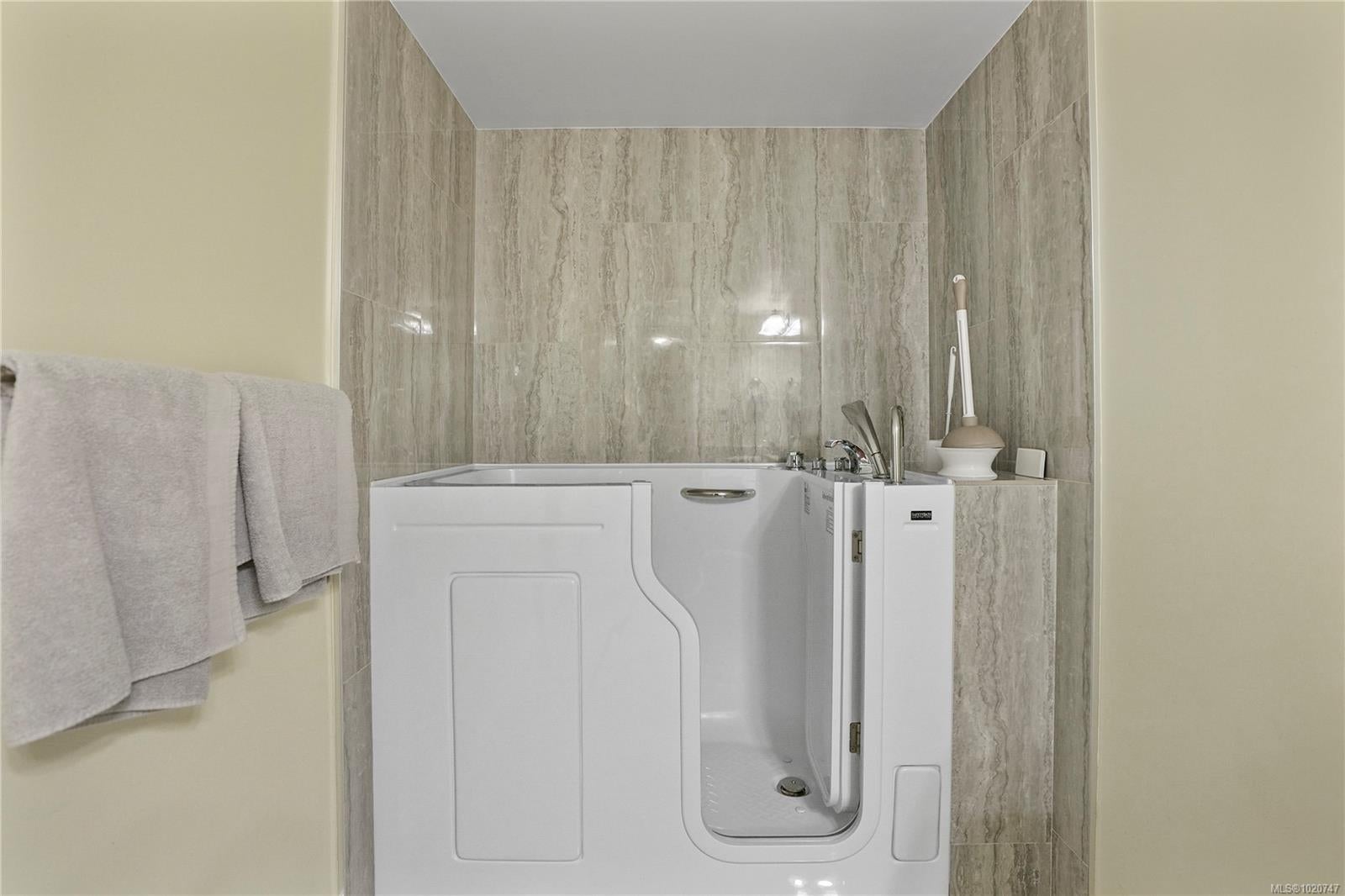 Welcome to Viewmont Heights in Royal Oak Village! This 2 bed/2 bth patio-style style ground floor unit is a 55+ complex (2008) located in the popular area of Saanich. Near Broadmead village & close to all transportation yet tucked away from traffic with shops, recreation, medical services, groceries & amazing restaurants only a short walk away. This well-kept, UPDATED home is in great condition with heated tile flrs and has an open kitchen & living rm, making it a very spacious floorpan. Upgraded walk in style tub and large easy-access shower. Handy in-suite laundry, secure underground parking, separate storage & a well-organized strata. Perfect walkable, private location and community to call home!
