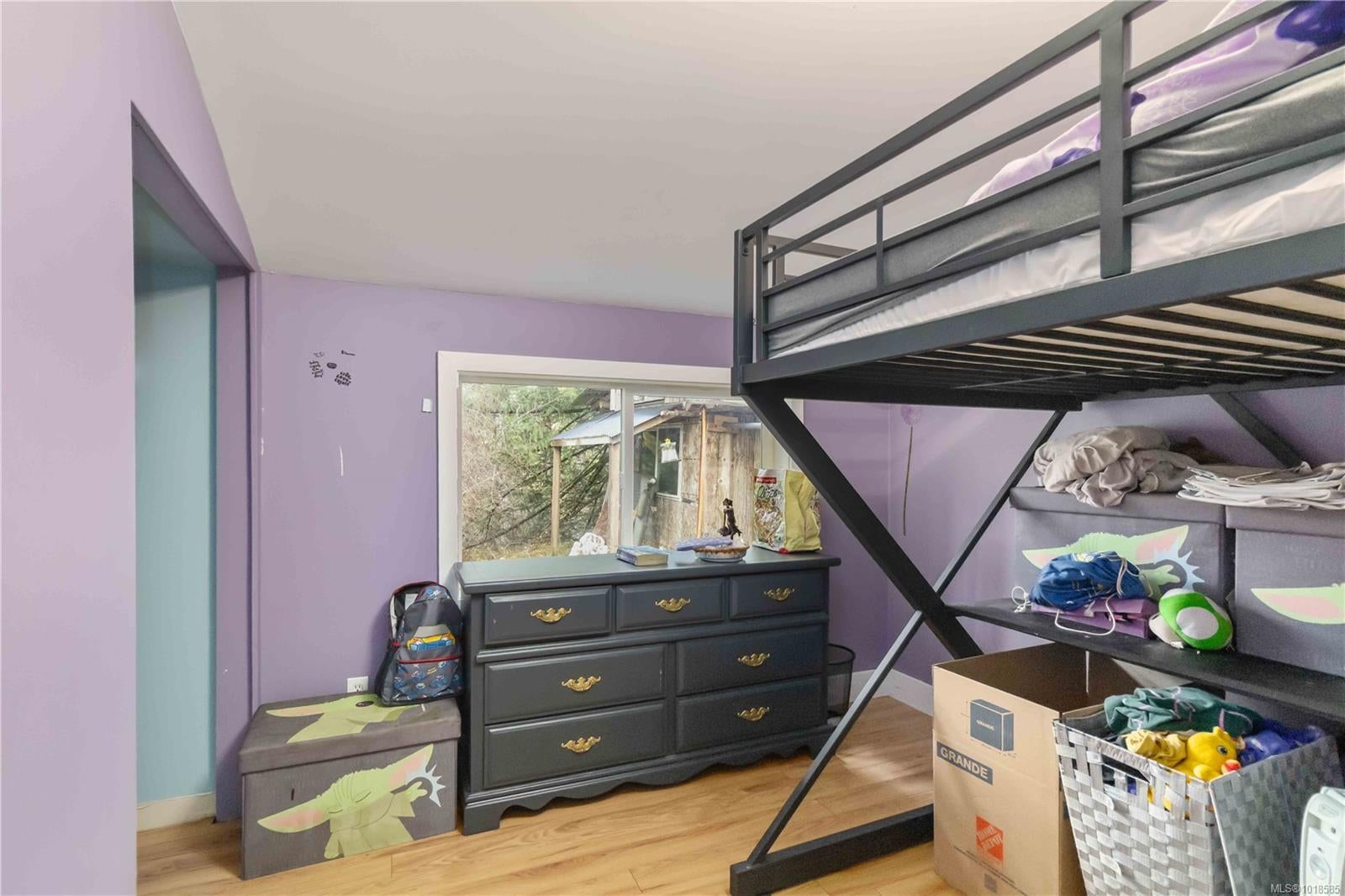 Discover this charming 1.24-acre property in the Highlands—just 10 minutes from Costco and Millstream Market. Originally a 1989 manufactured home, it was beautifully converted in the early 2000s into a spacious 3-bedroom plus den rancher. Enjoy an open, modern layout featuring a large kitchen with quartz counters, a bright family room, a living room with vaulted ceilings and cozy woodstove, and a separate dining area. The primary bedroom includes a 2-piece ensuite, with two additional bedrooms, a den/office (potential 4th bedroom), and laundry area. Highlights include solid wood floors, Hardie board siding, and a heat pump (requires servicing). Outside, relax on the private patio surrounded by a park-like setting with level lawns, gardens, a stream, trails, and a treehouse. Detached workshop, storage building, and ample parking with RV space. New well pressure tank. A peaceful family-friendly property—perfect for kids and pets. Some notice required for showings, as it is tenanted.