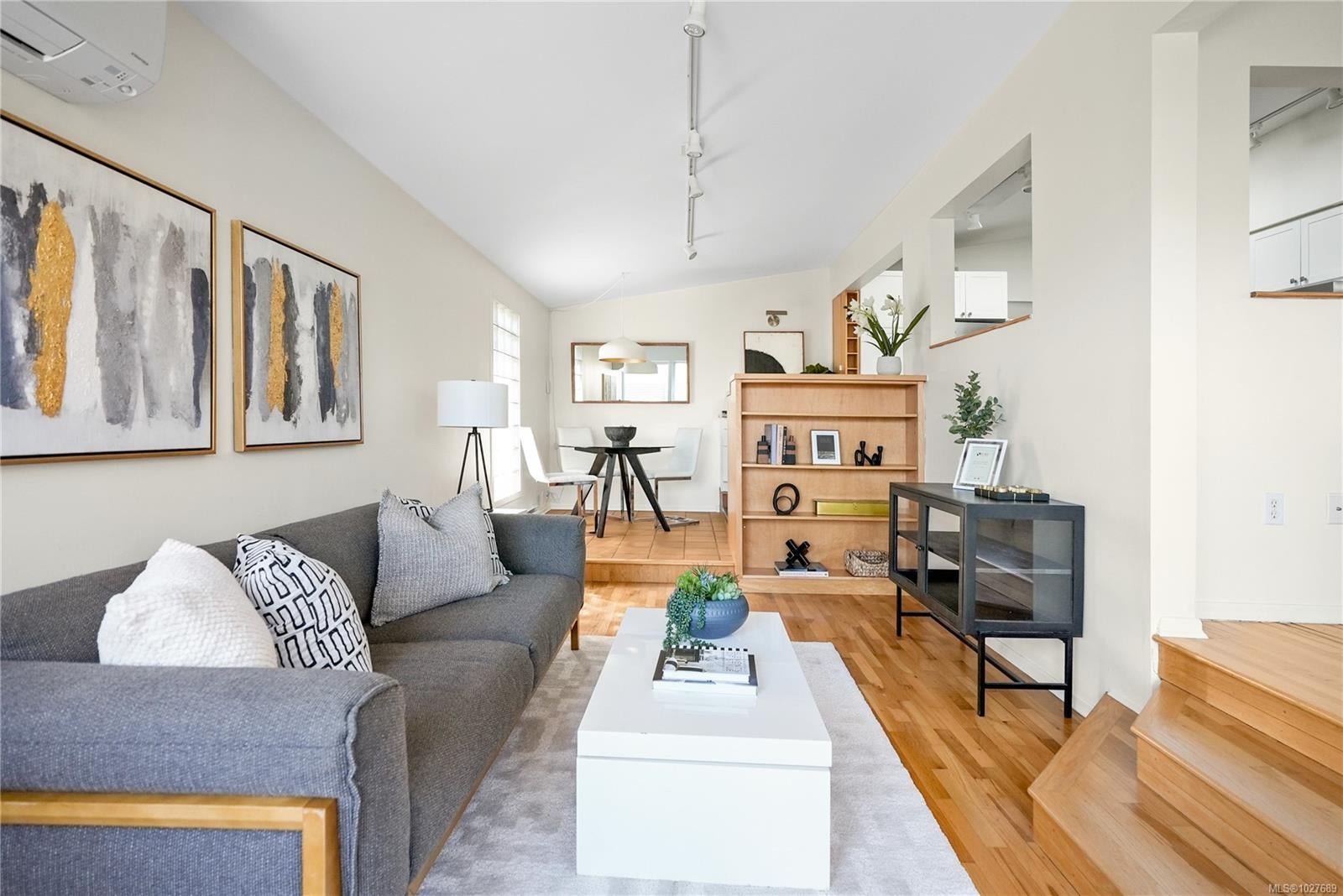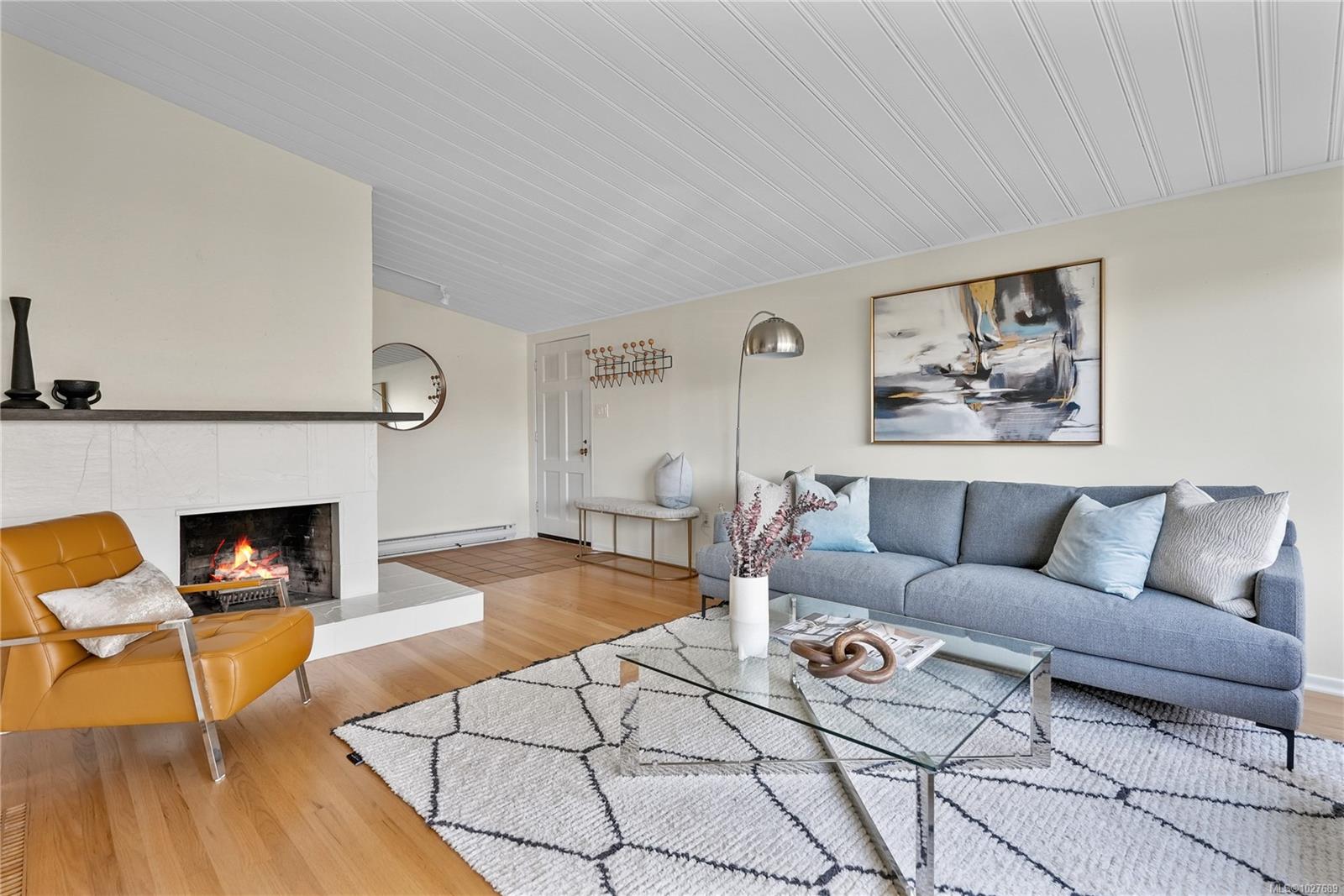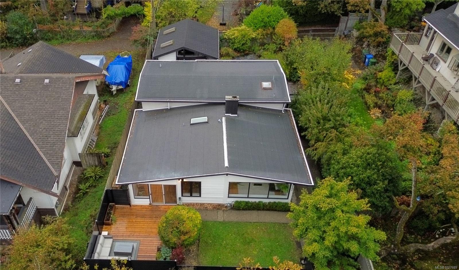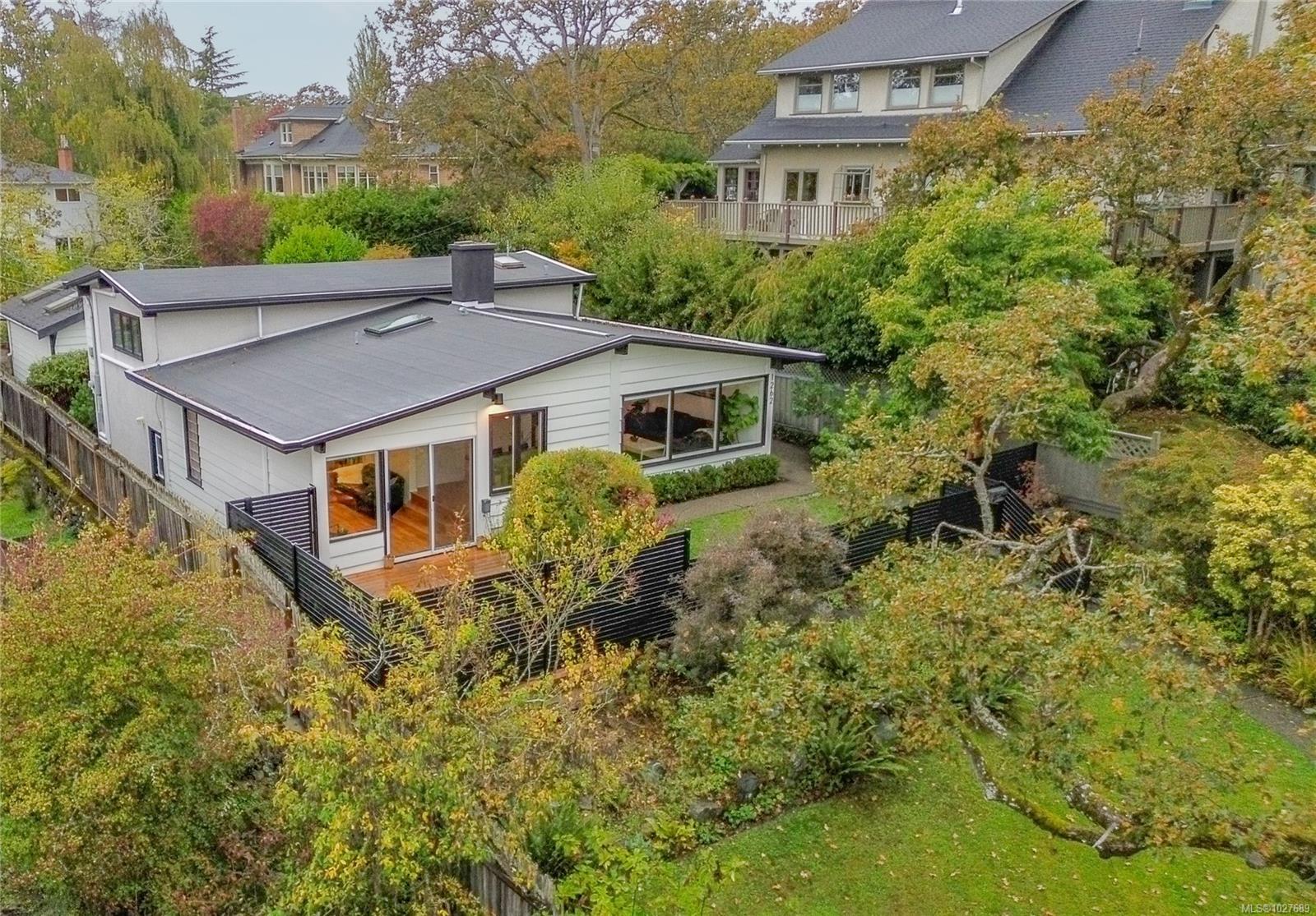 WALK TO THE VILLAGE IN THE HEART OF SOUTH OAK BAY! This bright, mid-century modern home perfectly blends privacy with walkability to the ocean, grocery store, boutiques, and coffee shops! Nestled on a quiet cul-de-sac, this spacious home sits on a sunny lot with a private southeast-facing front deck & west-facing garden. Interior features include vaulted ceilings & hardwd flrs which enhance the open-concept main level, which includes a generous living rm & cozy F/P, a welcoming dining area, kitchen, coffee nook, built-in office space, and a separate eating area. The inviting family rm opens onto a private deck to enjoy! The upper level boasts a primary bedrm w/ensuite & large flexible bedrm space. Down: additional bedrm w/ensuite, a rec. rm -ideal for extended family. Rear lane access to a carport & storage. Situated in one of the most sought-after neighbourhoods. A short stroll to local amenities, the marina, golf course, the waterfront, and parks. A gem of a community!