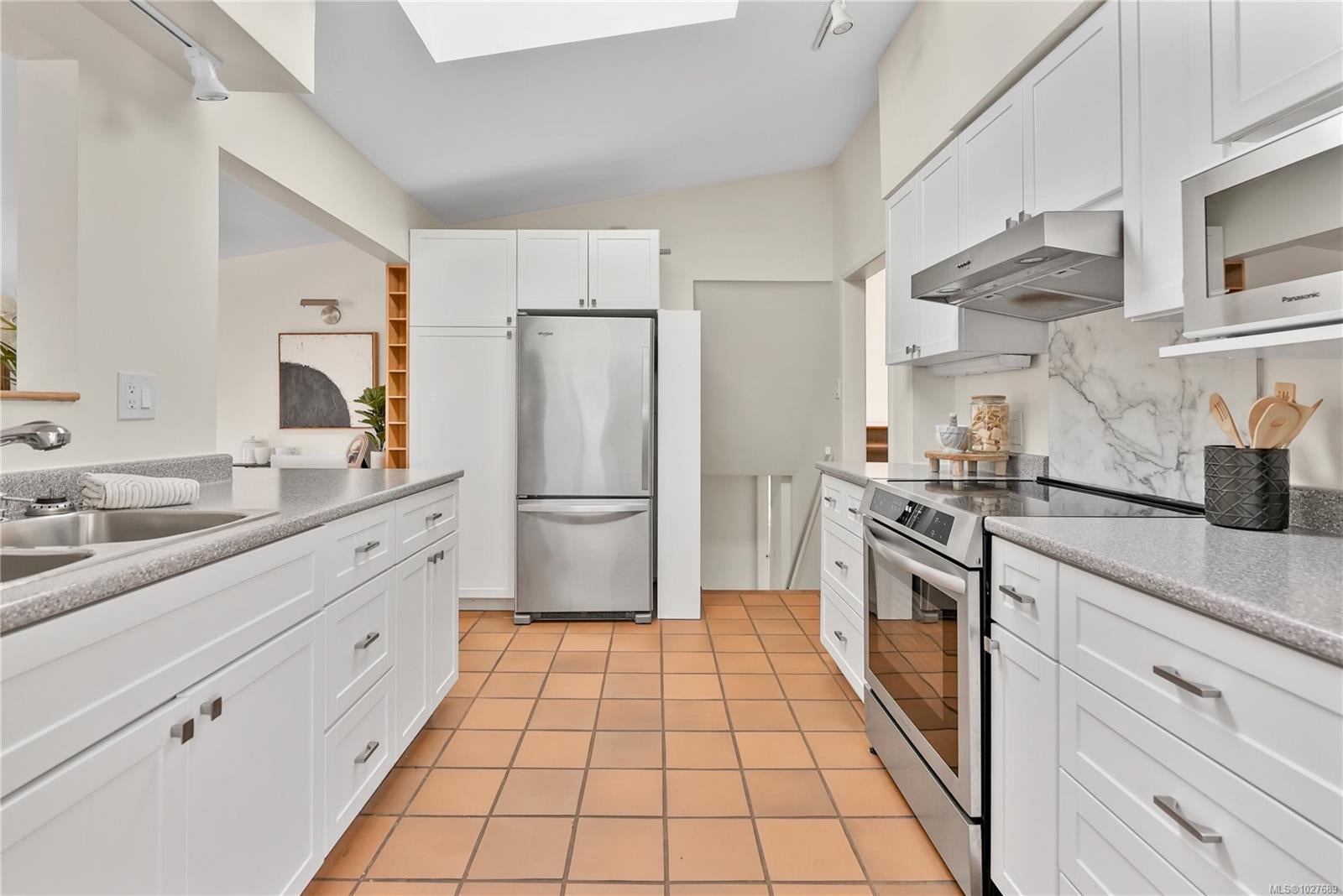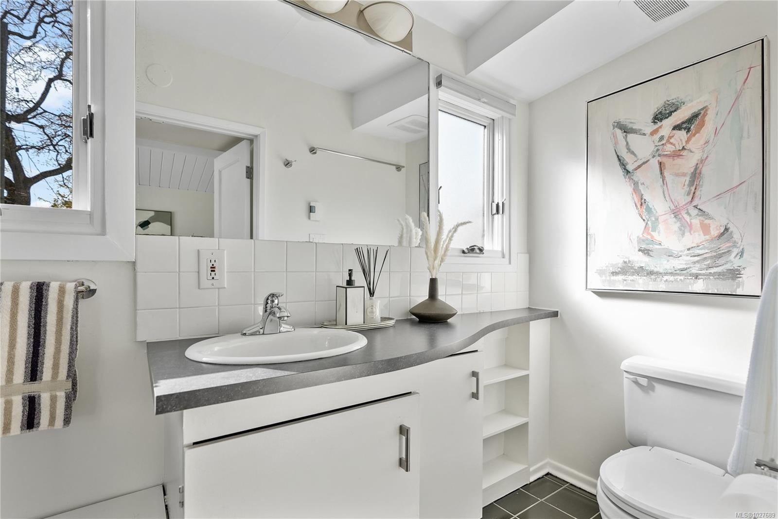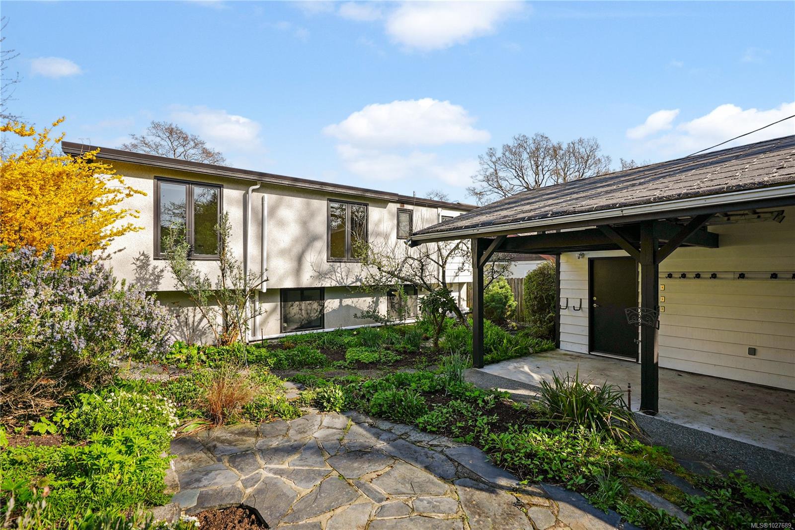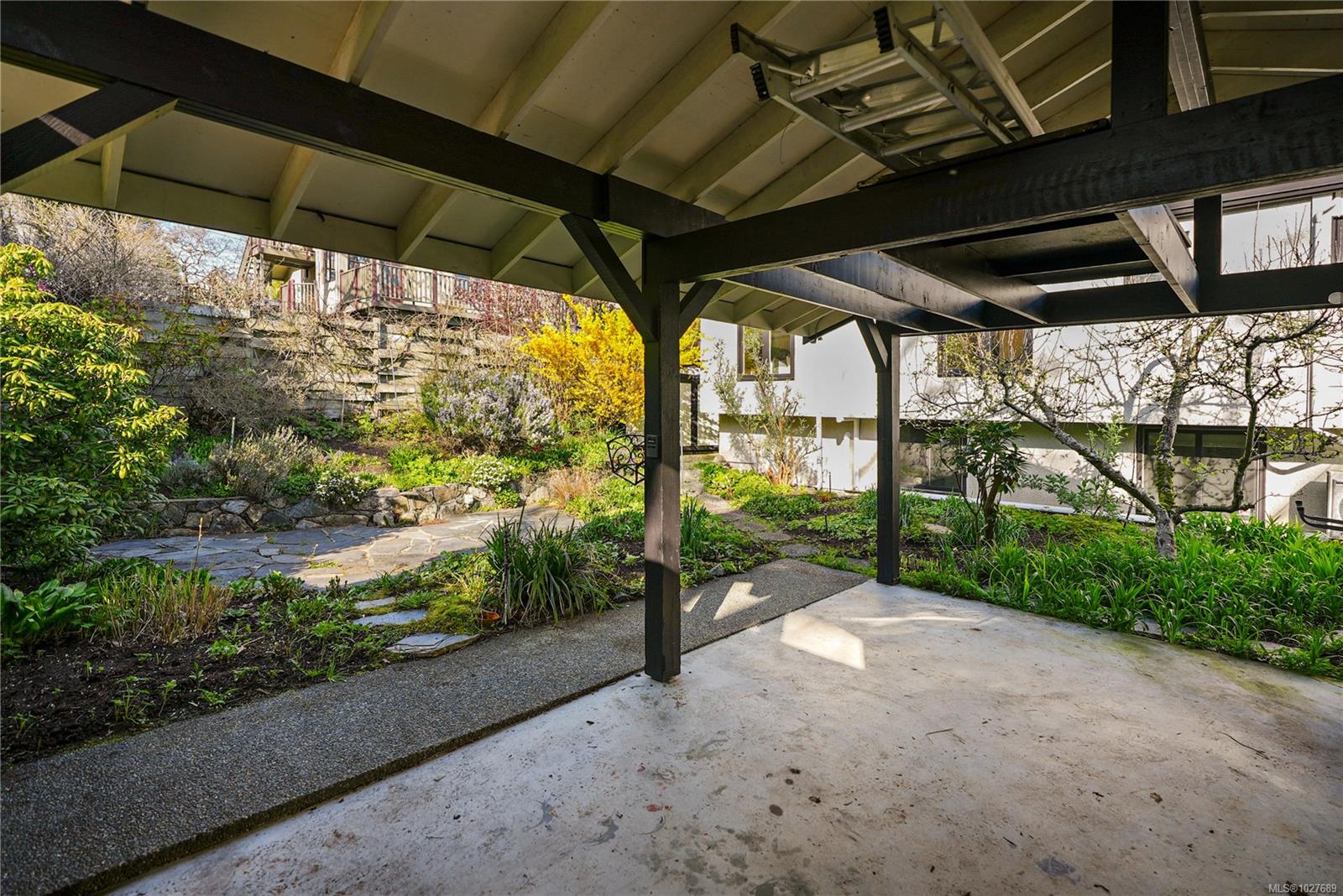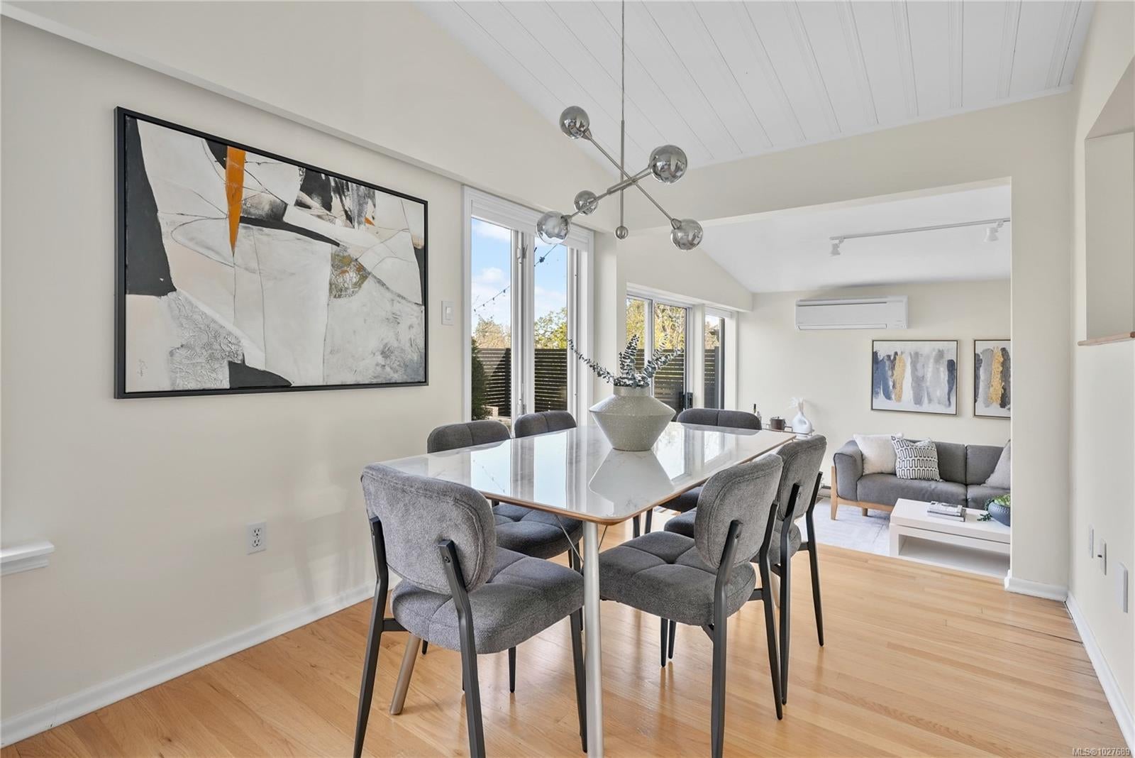 WALK TO THE VILLAGE IN THE HEART OF SOUTH OAK BAY! This bright, mid-century modern home perfectly blends privacy with walkability to the ocean, grocery store, boutiques, and coffee shops! Nestled on a quiet cul-de-sac, this spacious home sits on a sunny lot with a private southeast-facing front deck & west-facing garden. Interior features include vaulted ceilings & hardwd flrs which enhance the open-concept main level, which includes a generous living rm & cozy F/P, a welcoming dining area, kitchen, coffee nook, built-in office space, and a separate eating area. The inviting family rm opens onto a private deck to enjoy! The upper level boasts a primary bedrm w/ensuite & large flexible bedrm space. Down: additional bedrm w/ensuite, a rec. rm -ideal for extended family. Rear lane access to a carport & storage. Situated in one of the most sought-after neighbourhoods. A short stroll to local amenities, the marina, golf course, the waterfront, and parks. A gem of a community!