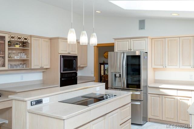 Experience the pinnacle of West Coast Contemporary living in this custom-built masterpiece, nestled on a 0.29-acre lot in the prestigious Gordon Head area. Boasting over 5,300 sq. ft. of refined living space, this home greets you with a grand entrance featuring a winding staircase, soaring vaulted ceilings, and arched windows that frame lovely ocean views. The main level is designed for sophisticated entertaining with an open-concept kitchen and a luxurious master suite complete with a 5-piece ensuite and walk-in closet.The lower level offers incredible versatility with radiant floor heating and an additional kitchen, making it a perfect mortgage helper or a private space for extended family. High-quality workmanship is evident throughout, from the natural stonework exterior to the efficient gas-powered heating and three cozy fireplaces. Situated on a quiet cul-de-sac, this 5+ bedroom residence combines elegance with modern functionality.